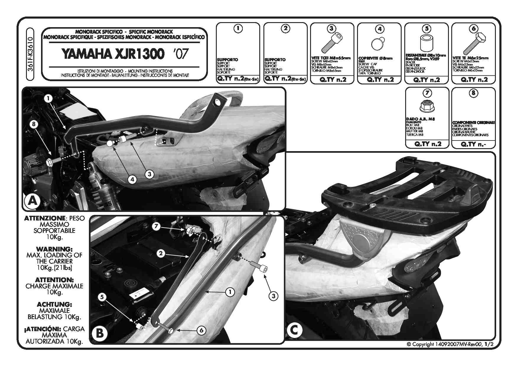Givi 361F Stelaż kufra centralnego Yamaha XJR 1300 (07-14)