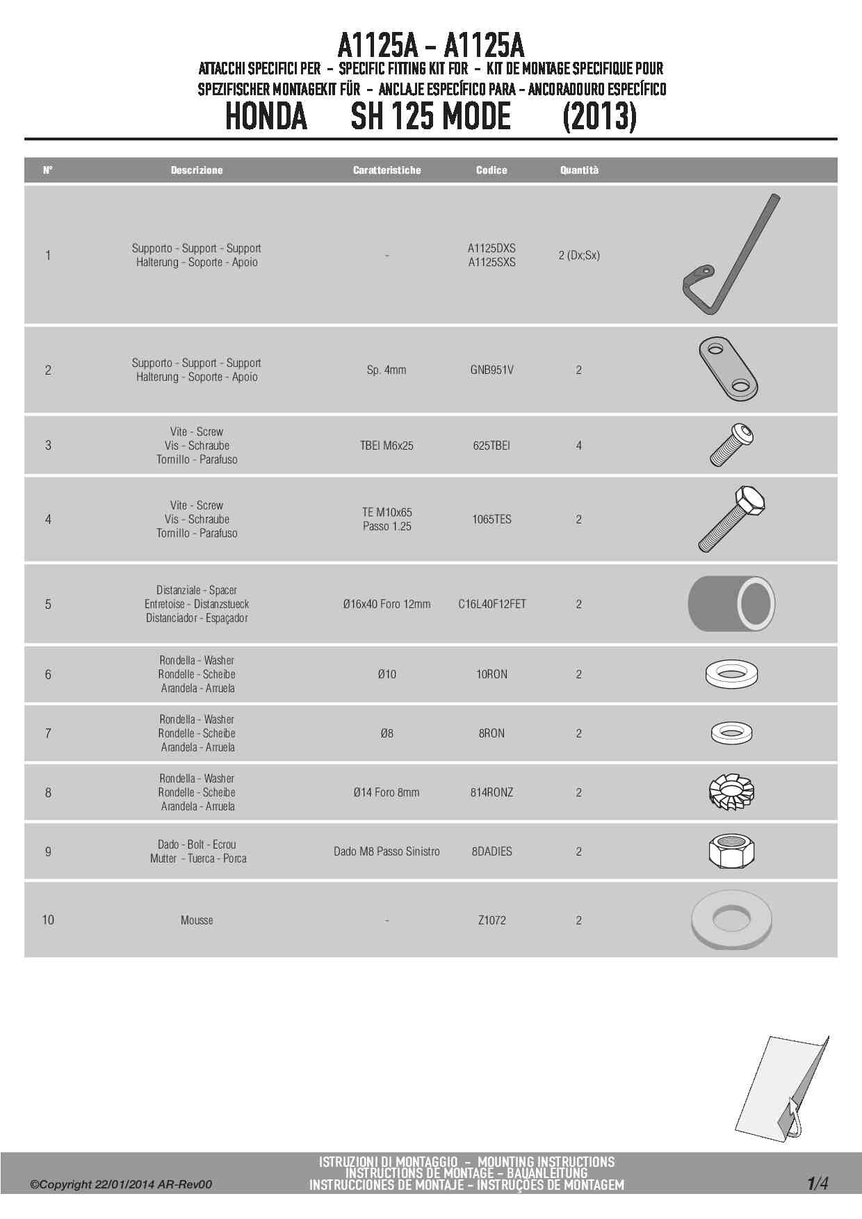 Zestaw montażowy Givi A1125A