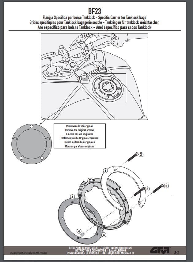 Mocowanie torby w systemie TANKLOCK na korek wlewu paliwa Givi BF23 do motocykla Yamaha MT-09 Tracer (15-17) 900 / 900 GT (18-20) / Tracer 9/GT/GT+ (21-24)