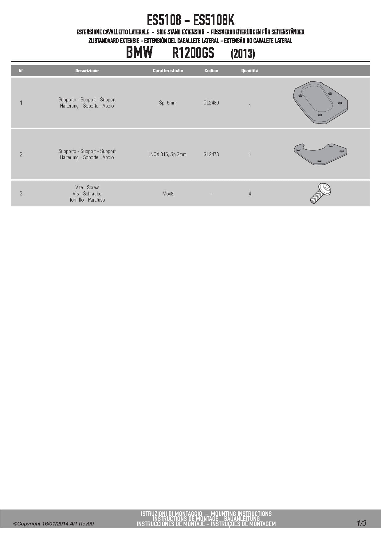 Poszerzenie stopki bocznej Givi ES5108 do motocykla BMW R1200GS (13-18) / R1250GS (19-23)