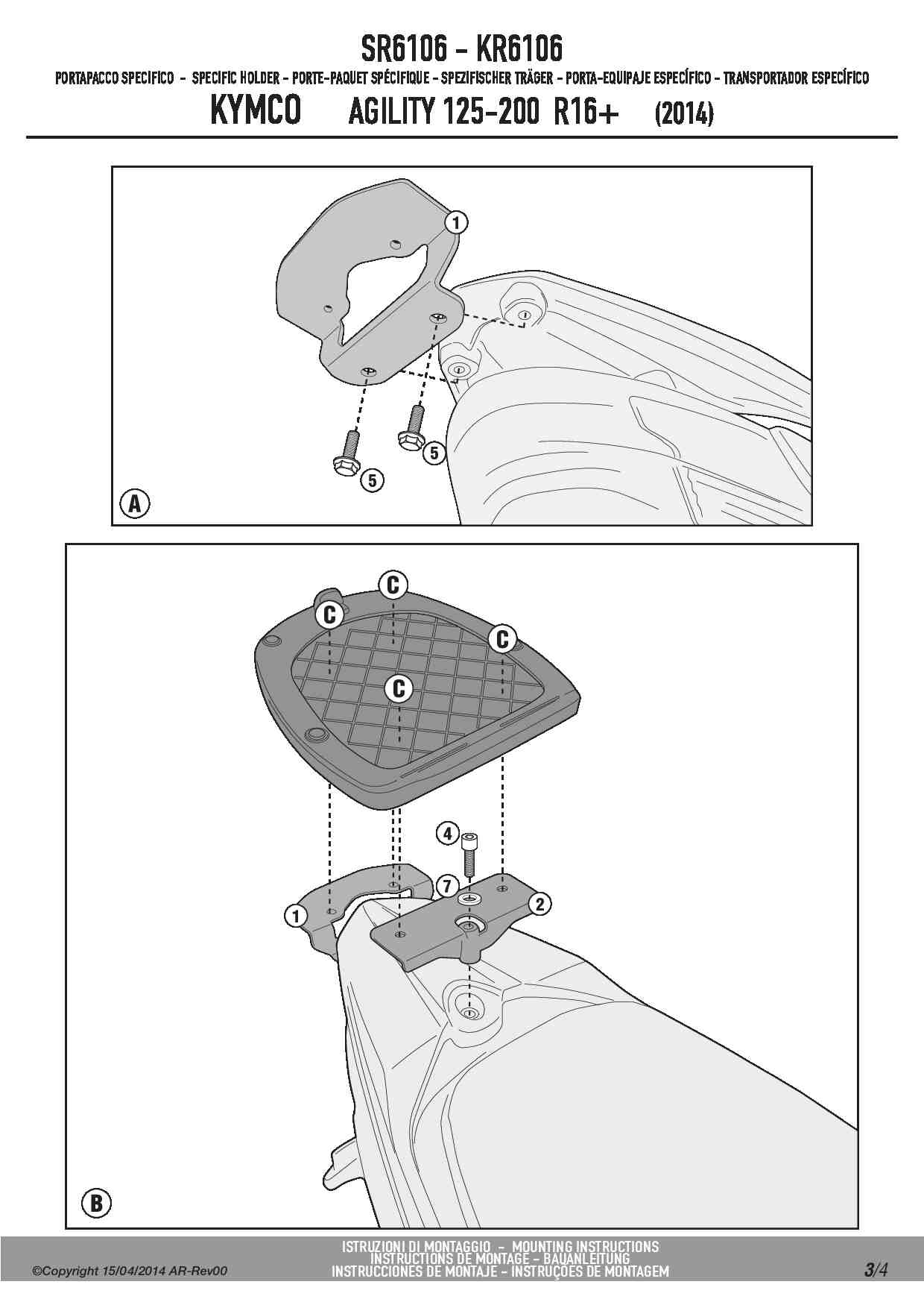 Stelaż kufra centralnego Givi SR6106 do skutera Kymco Agility 50-125-150-200 R16+ (14-25)