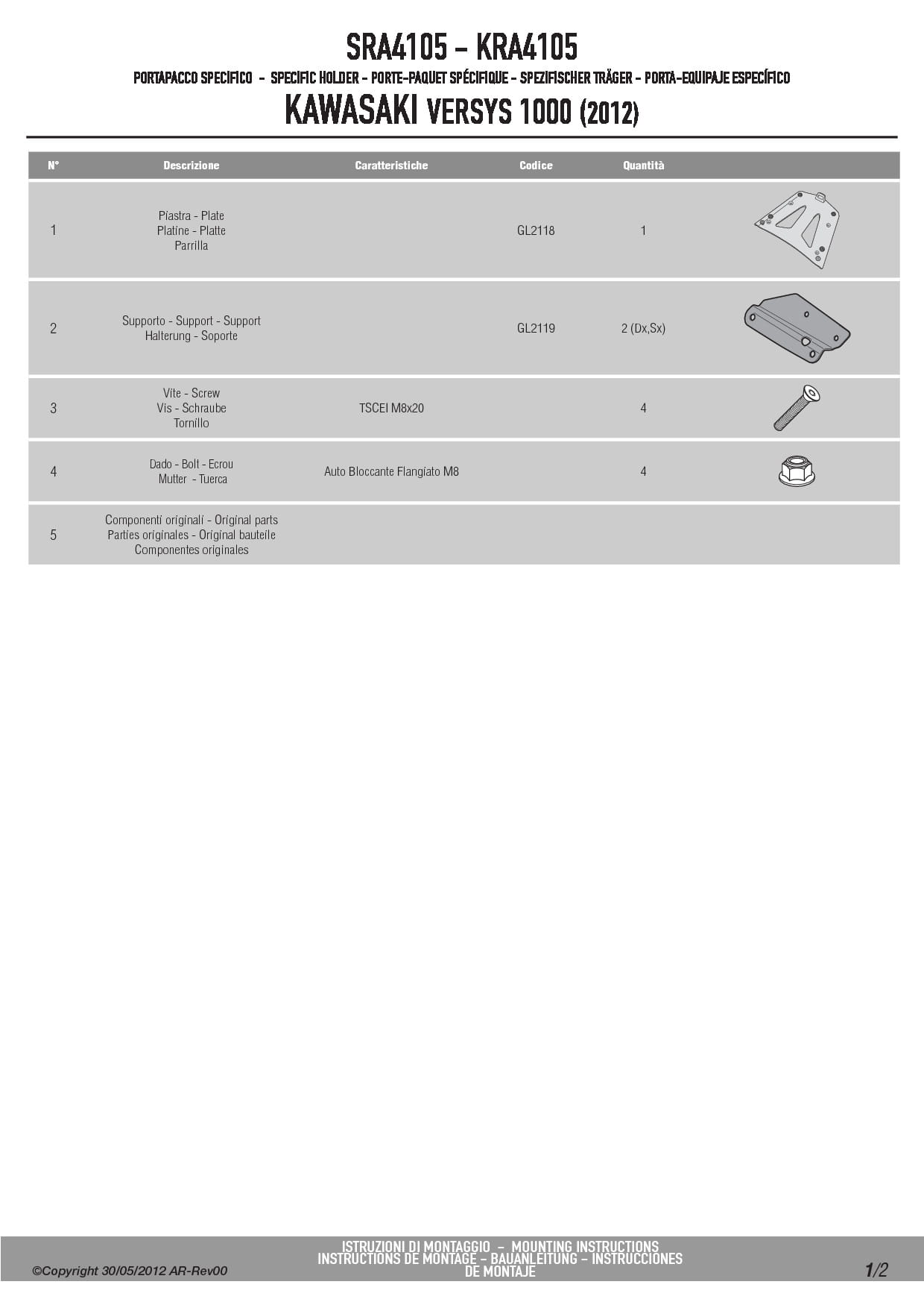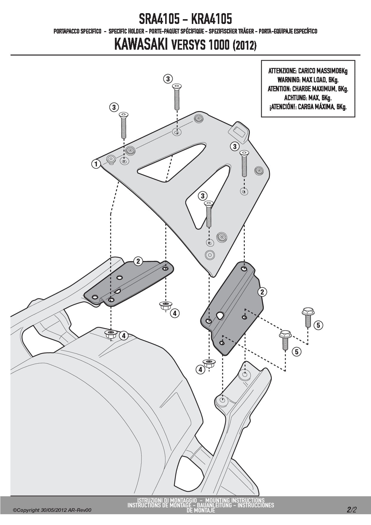 Stelaż kufra centralnego Givi SRA4105 do motocykla Kawasaki Versys 1000 (12-24) / Versys 1000 SE (19-24) / Versys 1100 (25)