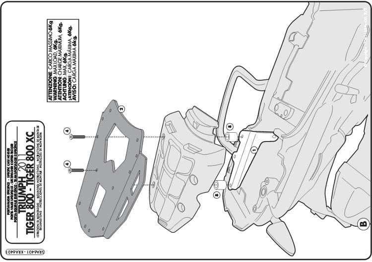 Stelaż kufra centralnego Givi SRA6401 do motocykla Triumph Tiger 800 (11-17) / Tiger 800 XC / XR (11-19)