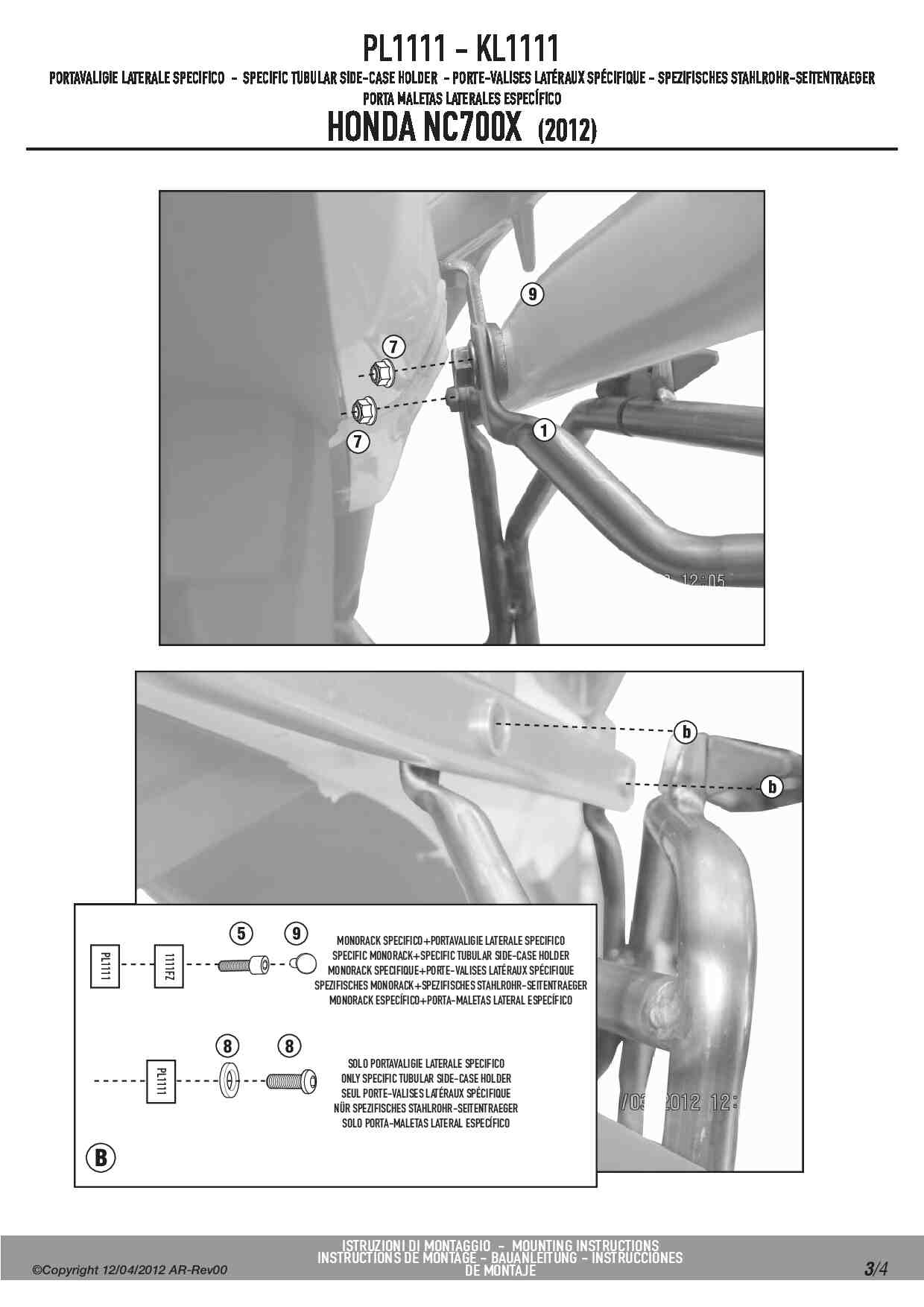 Dodatkowe adnotacje do stelaży bocznych Givi PL1111: