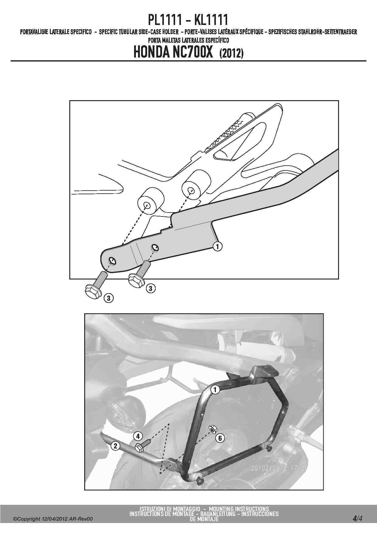 Stelaż kufrów bocznych Givi PL1111 do motocykla Honda NC700S/NC750S/NC750S DCT (12-15) / NC700X/NC750X/NC750X DCT (12-15)