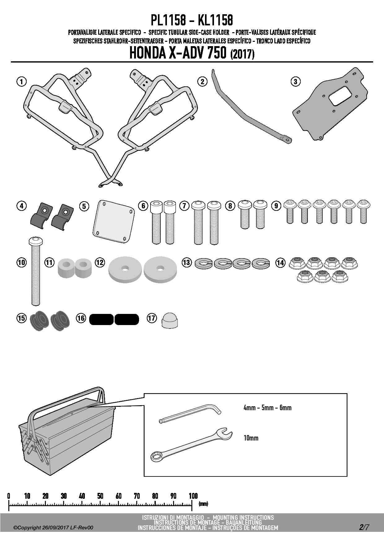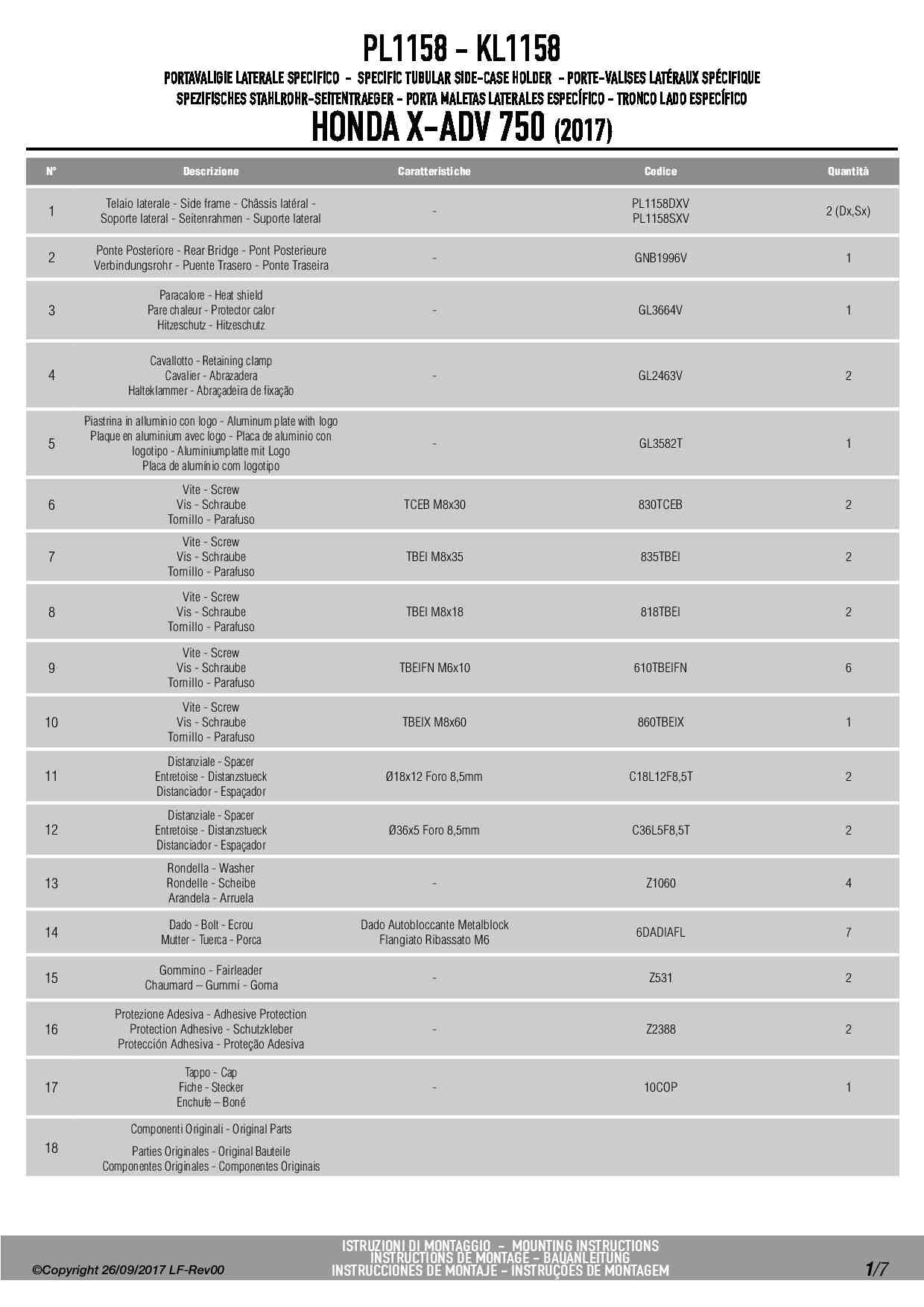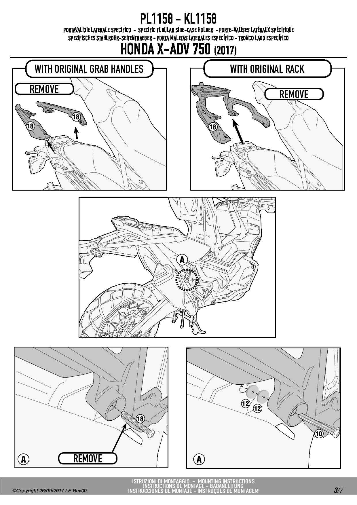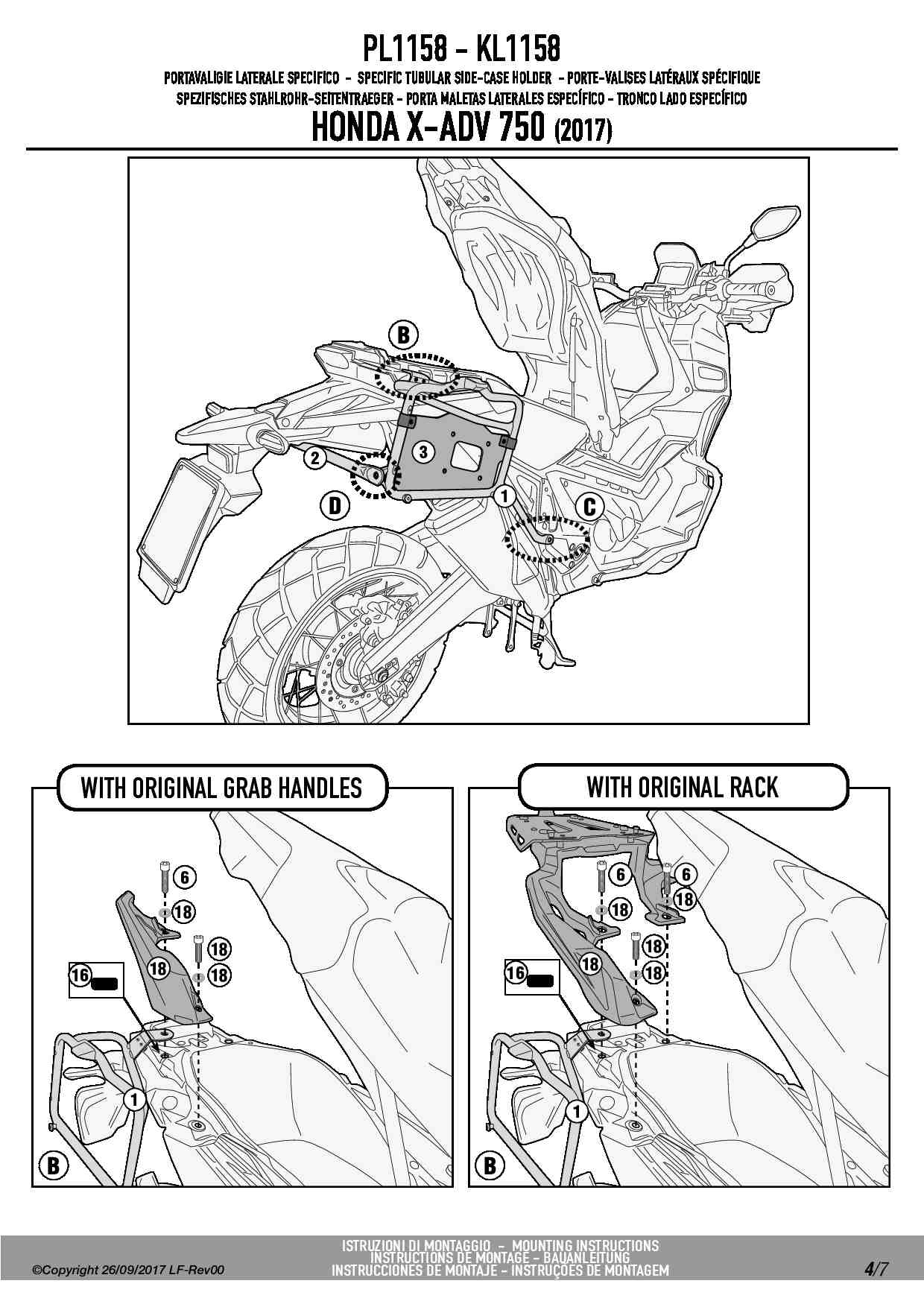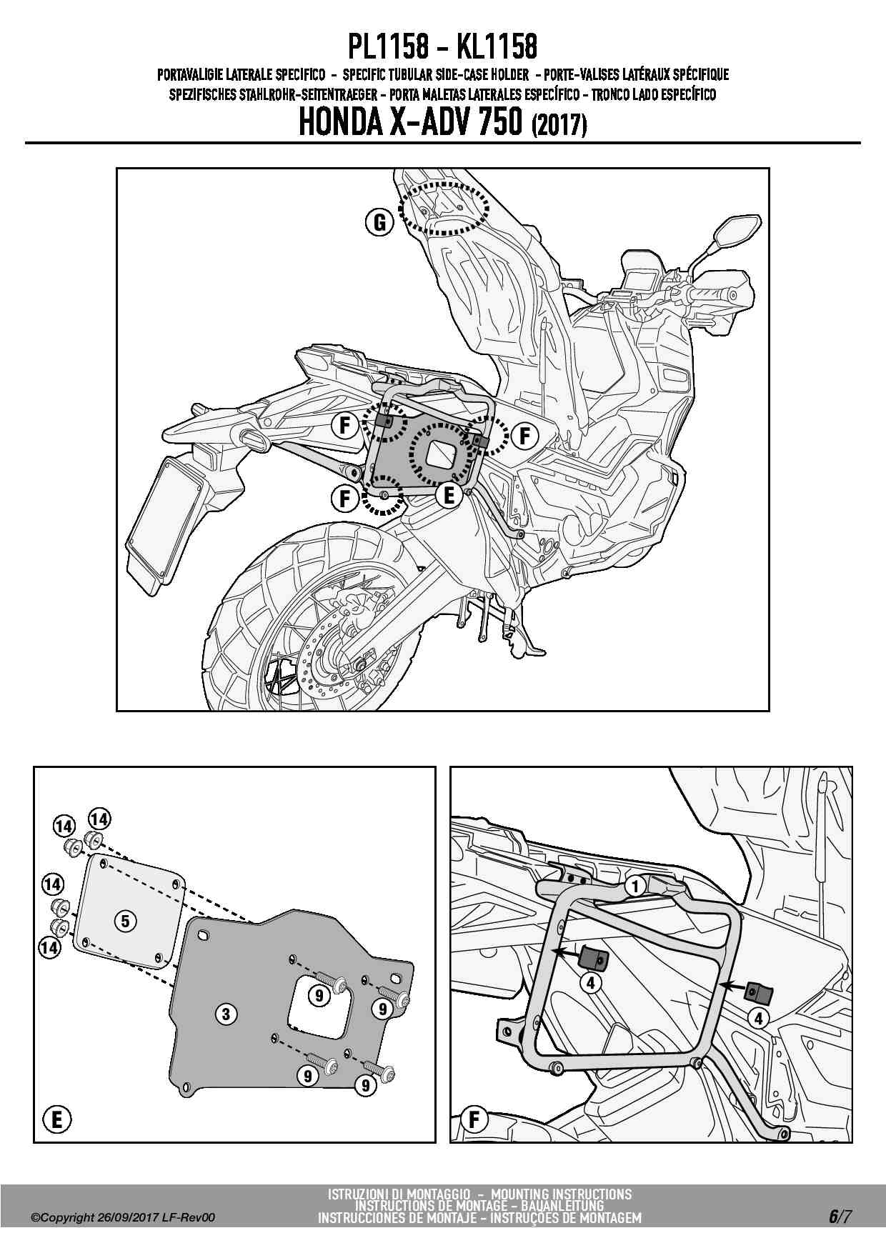 Dodatkowe adnotacje do stelaży bocznych Givi PL1158: