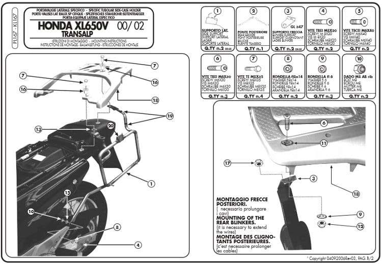 Stelaż kufrów bocznych Givi PL167 do motocykla Honda XL 650V Transalp (00-07)