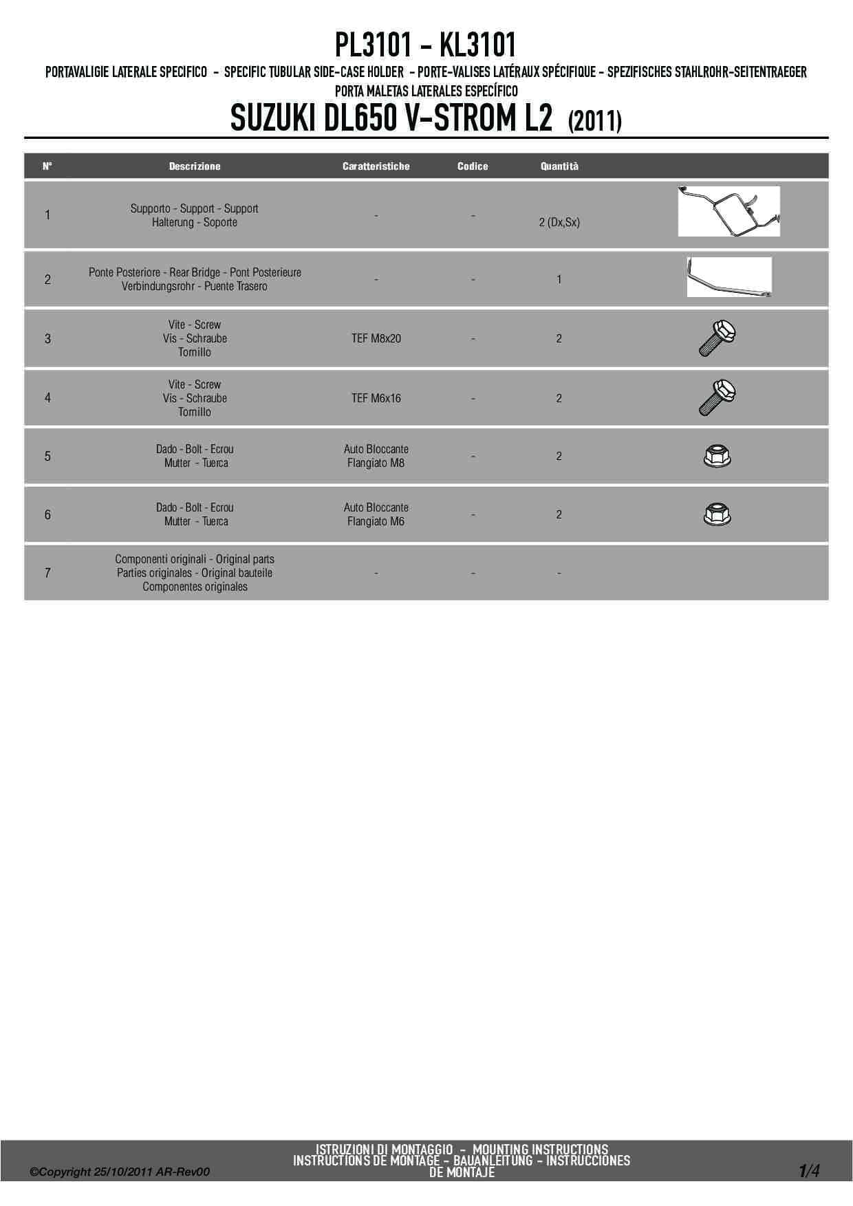 Stelaż kufrów bocznych Givi PL3101 do motocykla Suzuki DL 650 V-Strom (11-16)