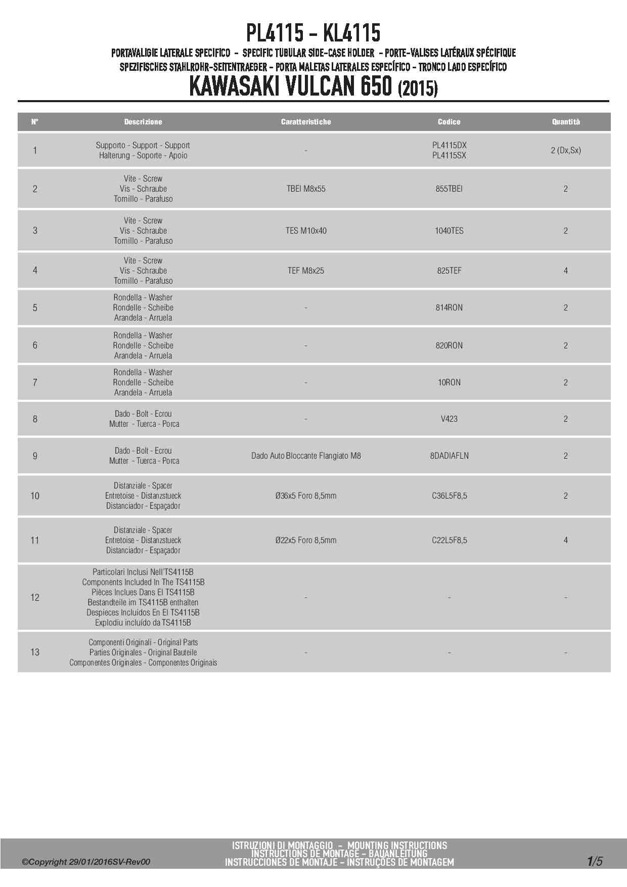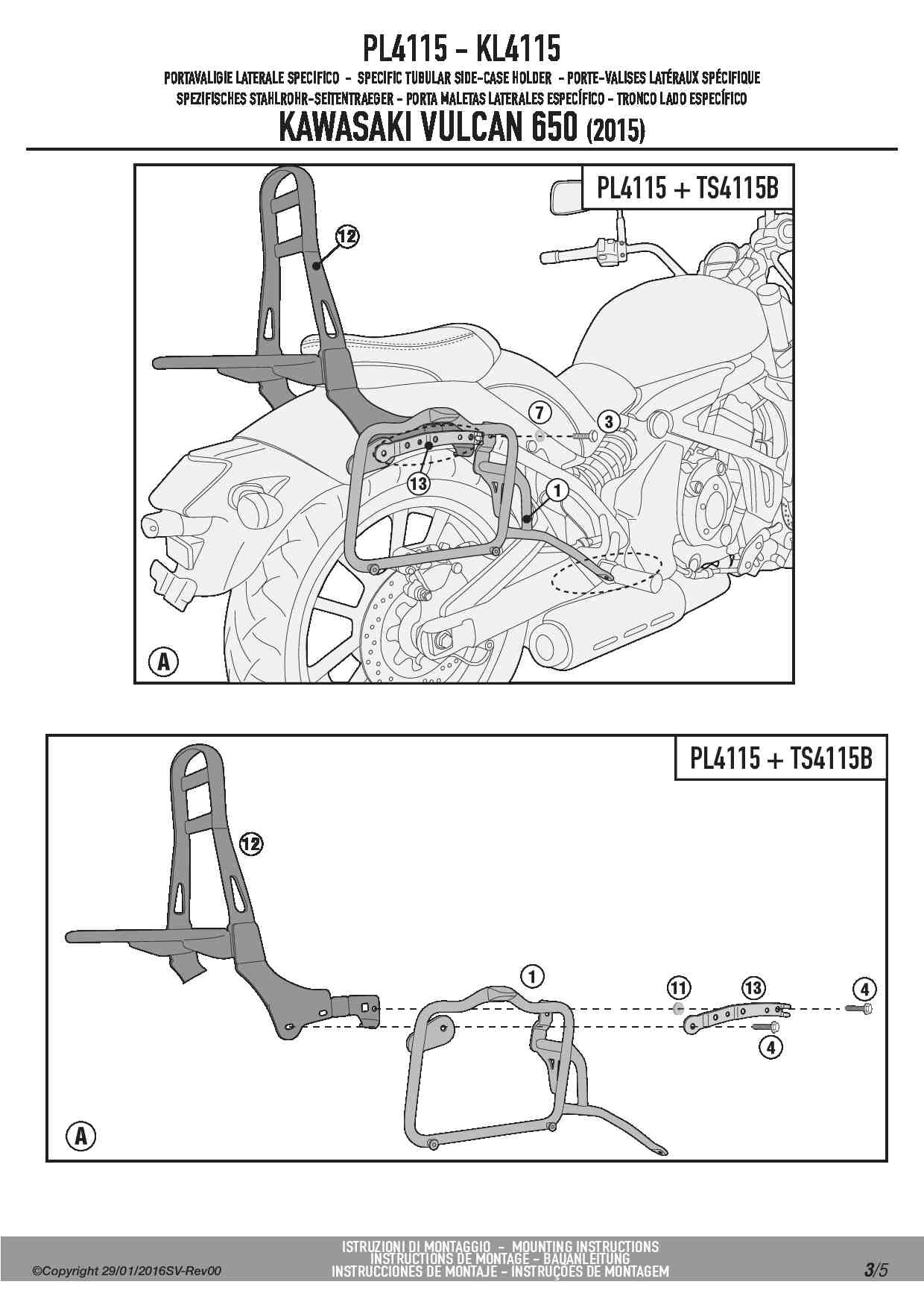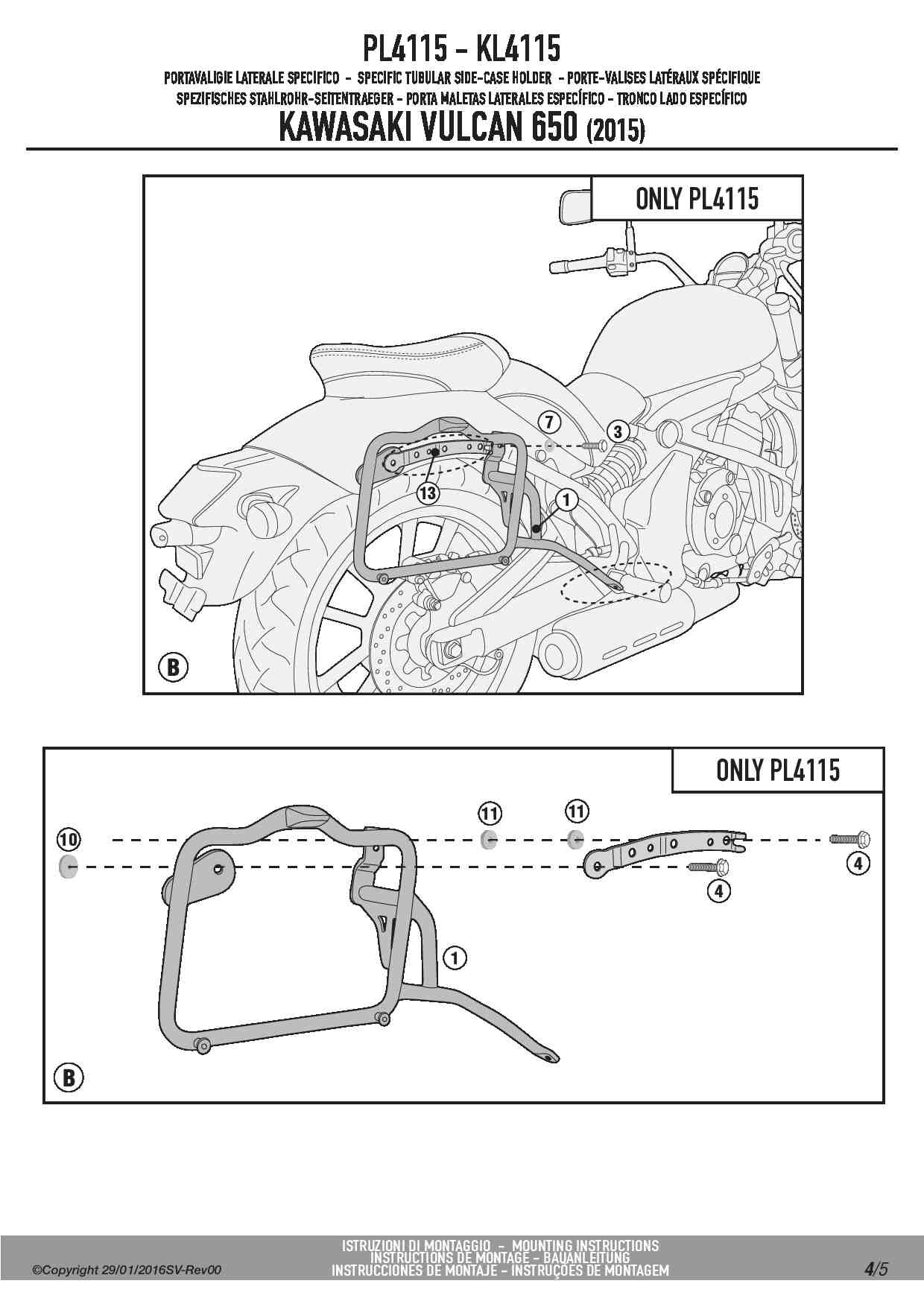 Dodatkowe adnotacje do stelaży bocznych Givi PL4115: