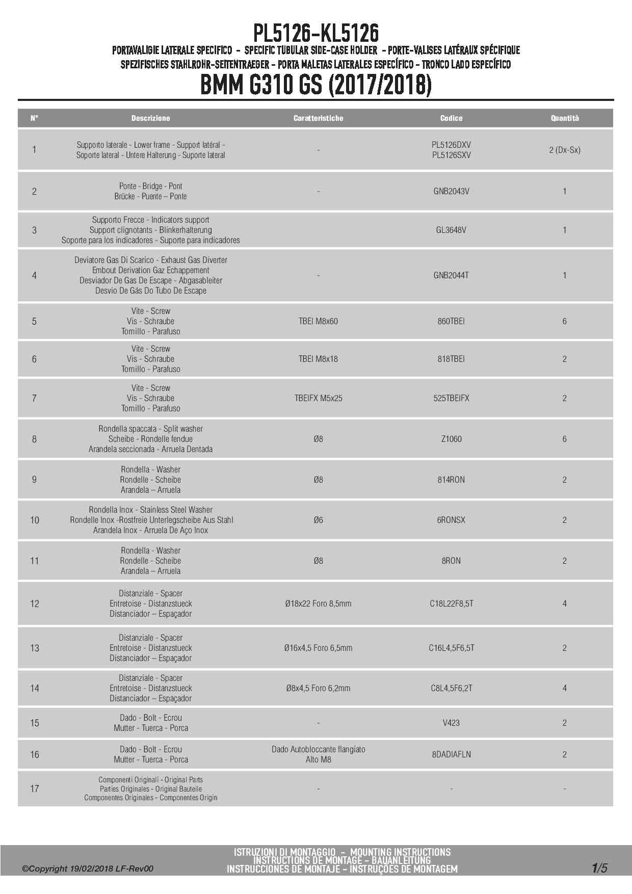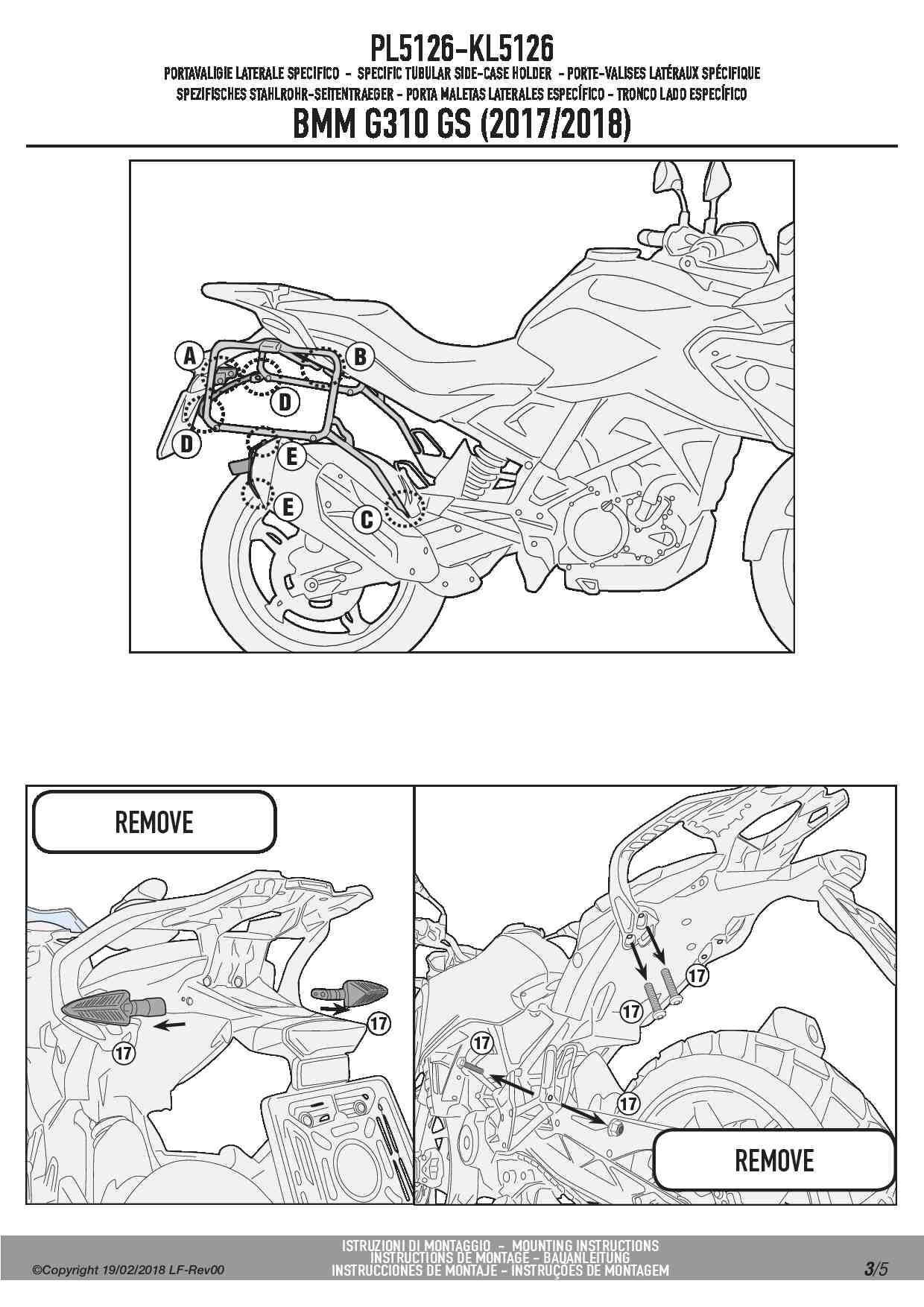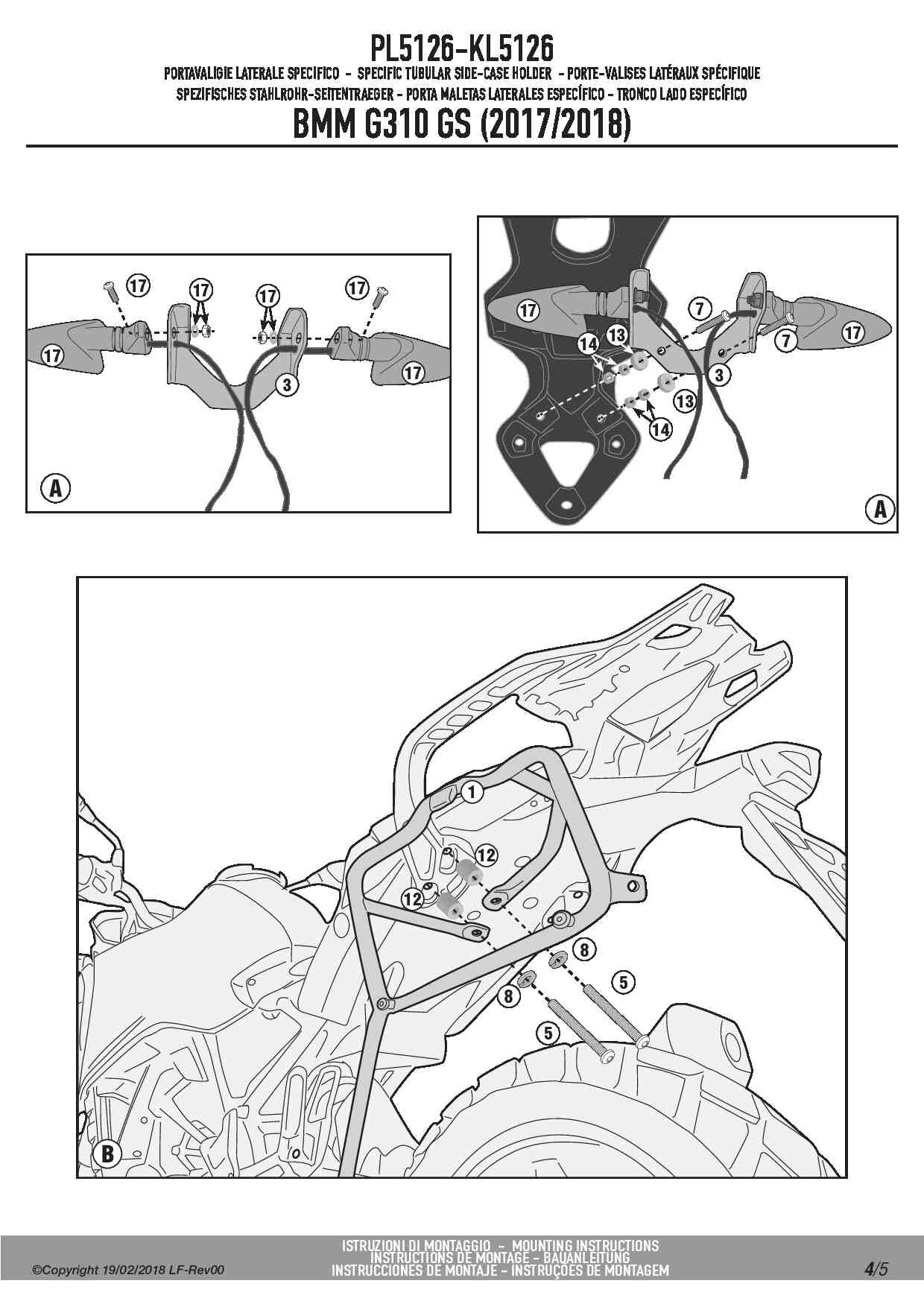 Dodatkowe adnotacje do stelaży bocznych Givi PL5126: