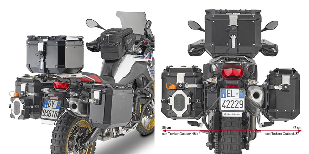 Stelaż pozwala na zamontowanie dwóch kufrów aluminiowych w systemie MONOKEY CAM-SIDE i jazdę z nimi w każdych warunkach!