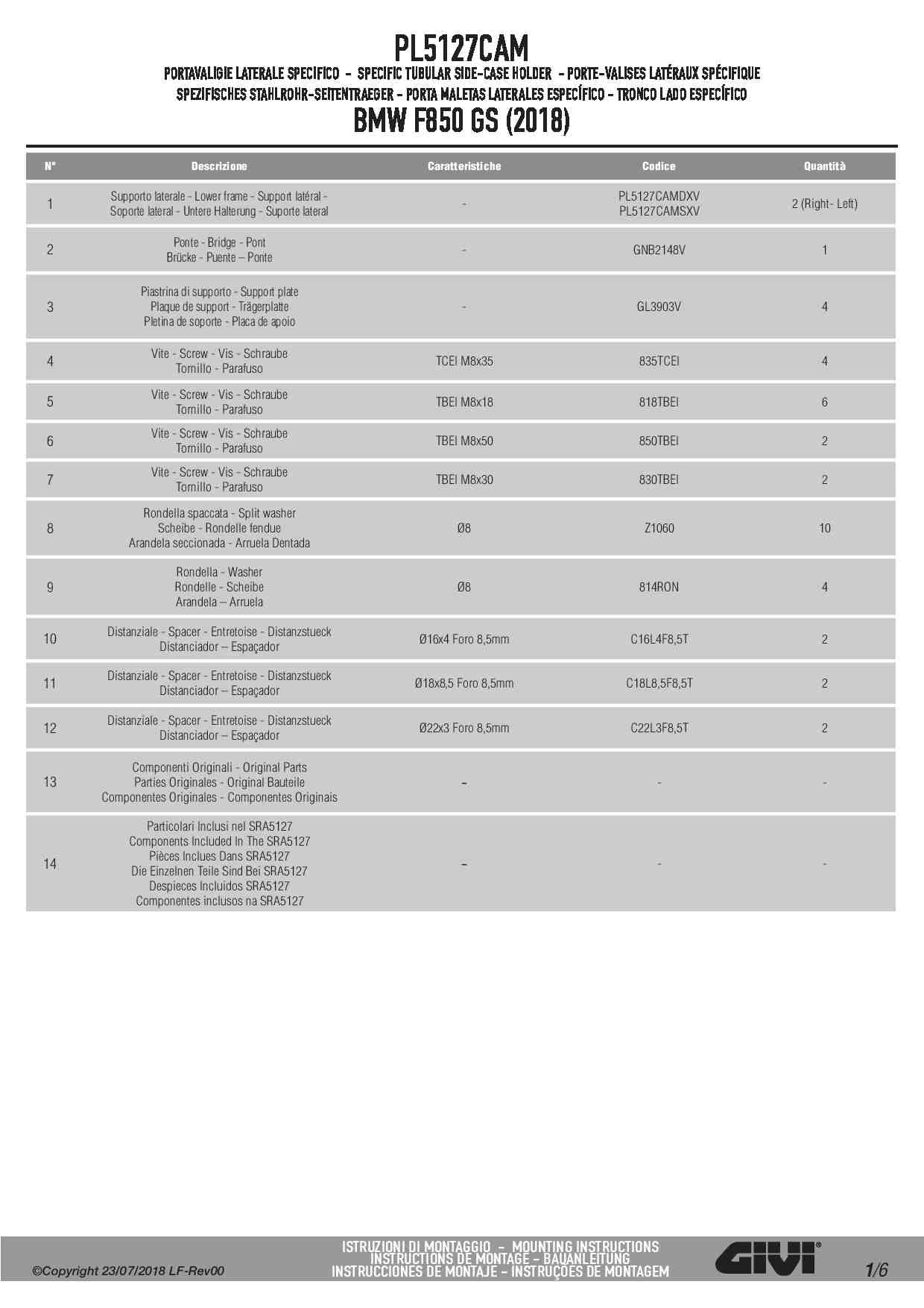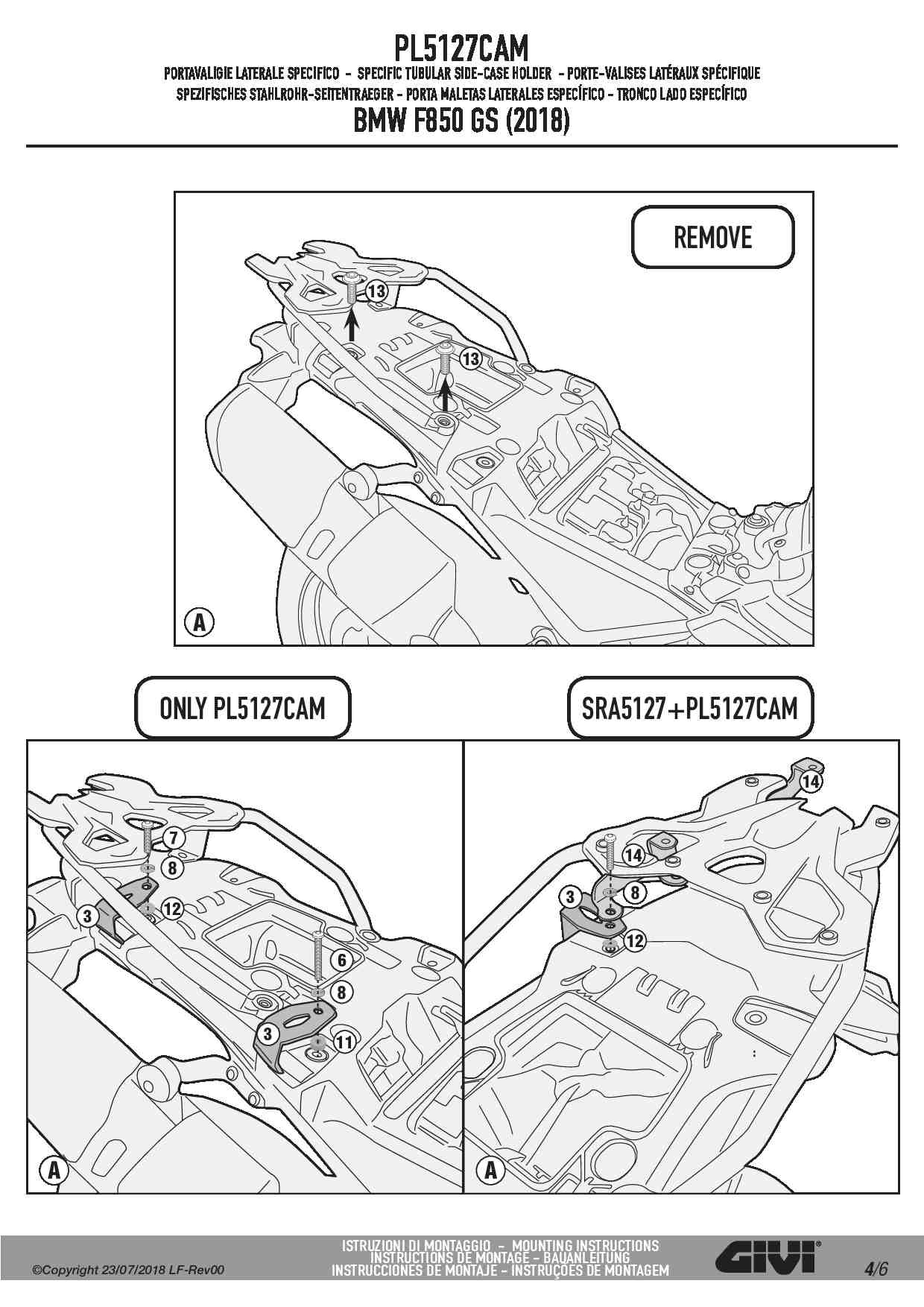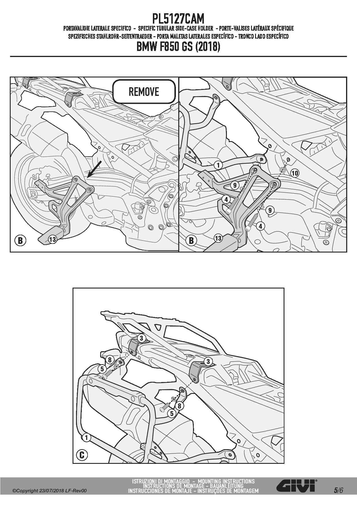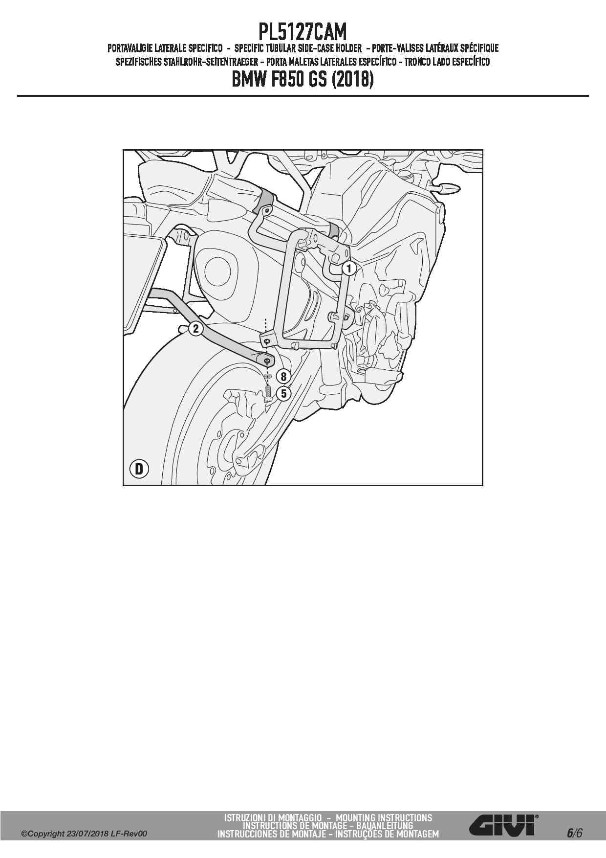 Stelaż kufrów bocznych Givi PL5127CAM do motocykla BMW F 750 GS (18-23) / F 850 GS (18-23) / F 850 GS Adventure (19-23) / F 800 GS (24-25) / F 900 GS Adventure (24-25)