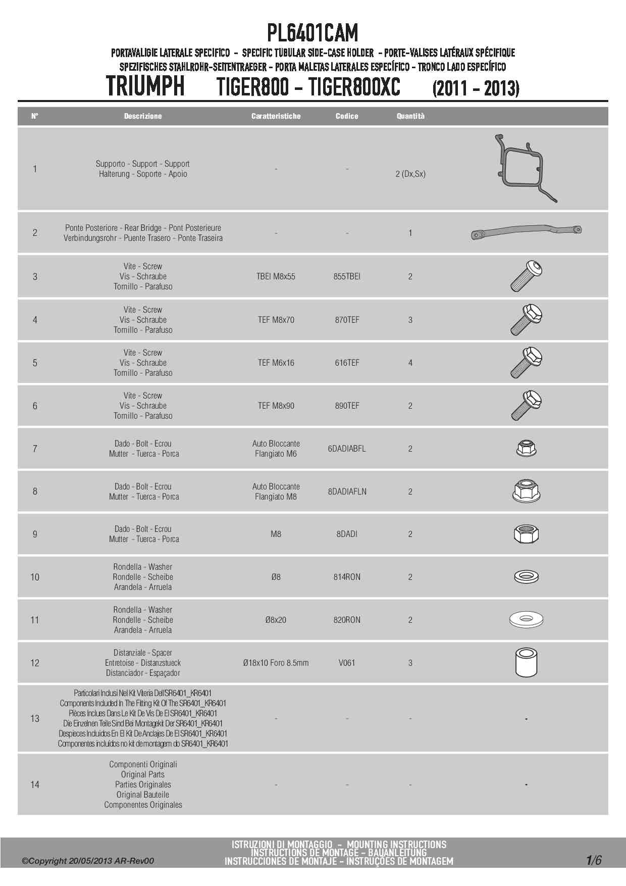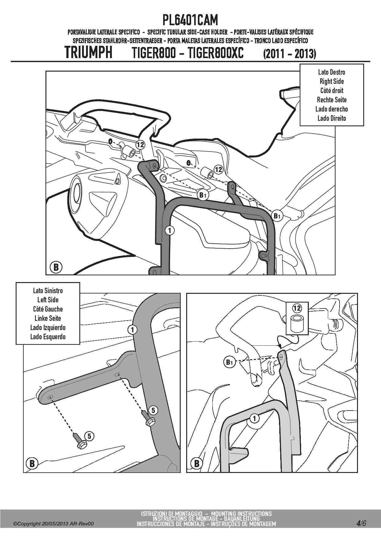 Stelaż kufrów bocznych Givi PL6401CAM do motocykla Triumph Tiger 800 / 800 XC / 800 XR (11-17)