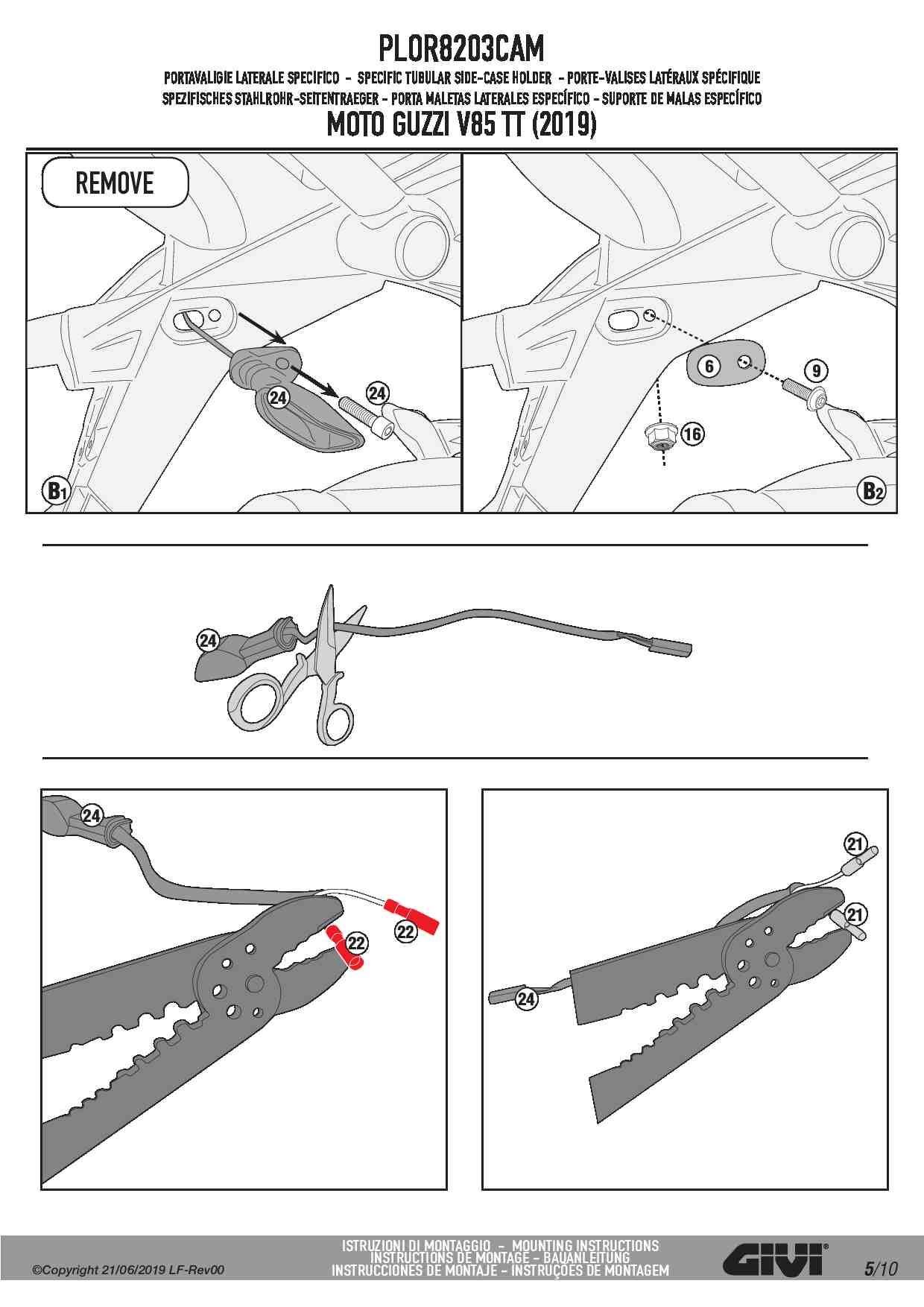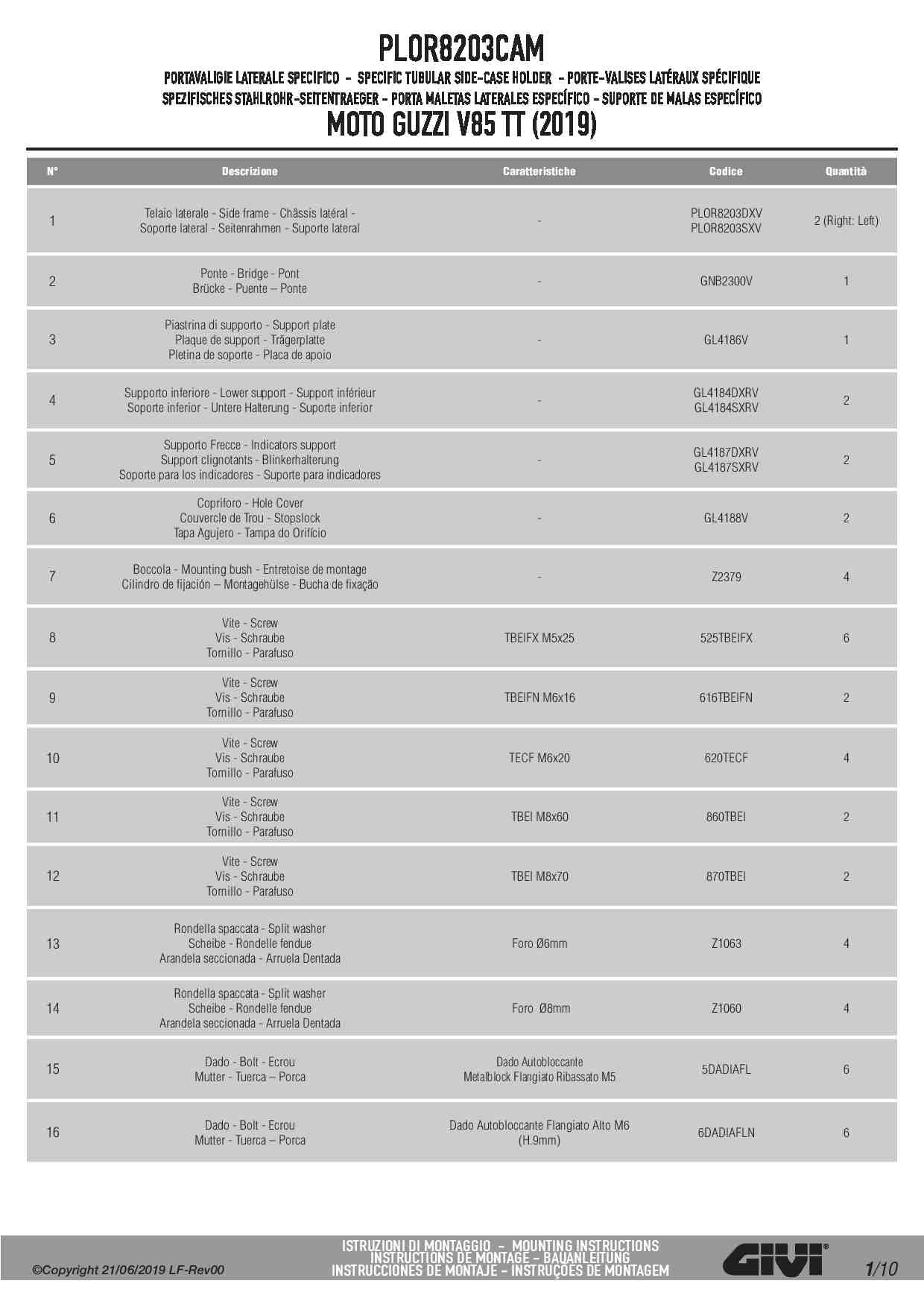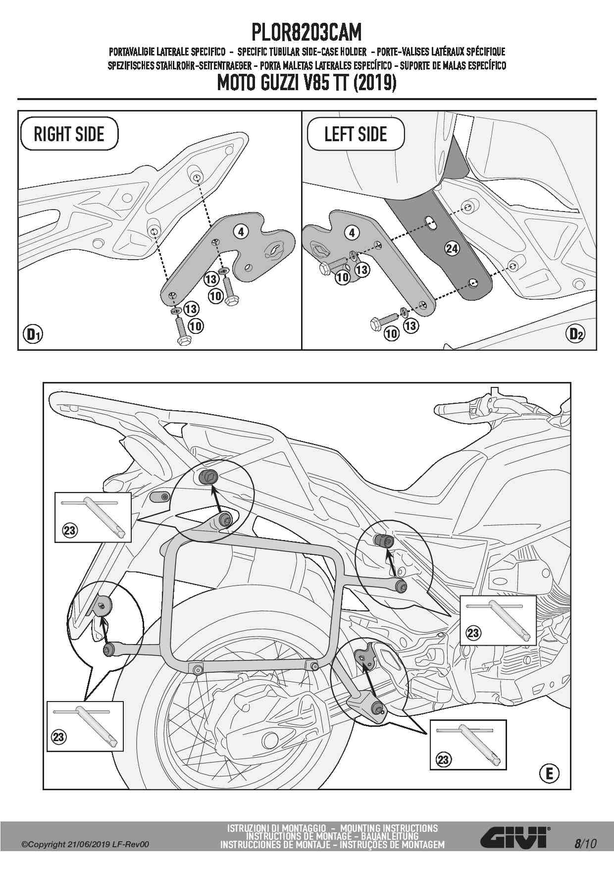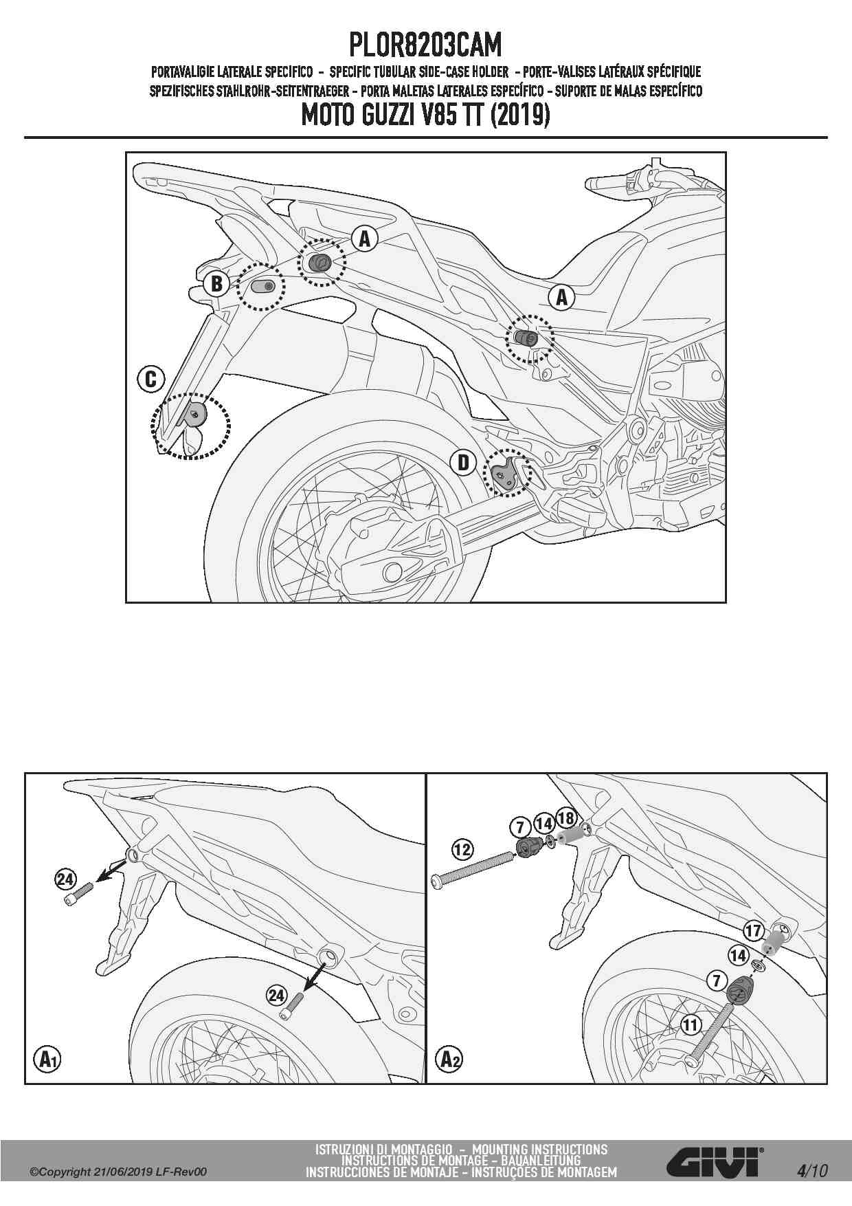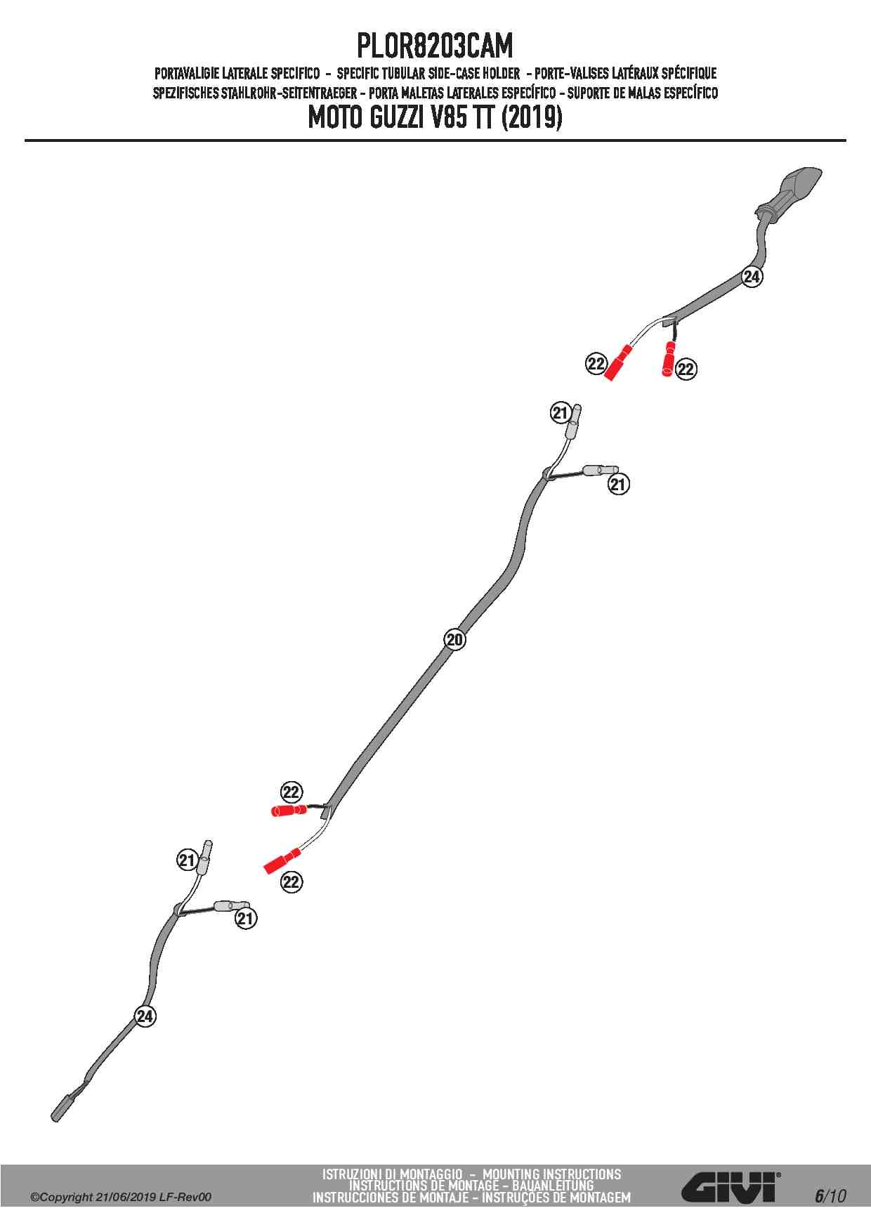 Stelaż kufrów bocznych Givi PLOR8203CAM do motocykla Moto Guzzi V85 TT (19-23)