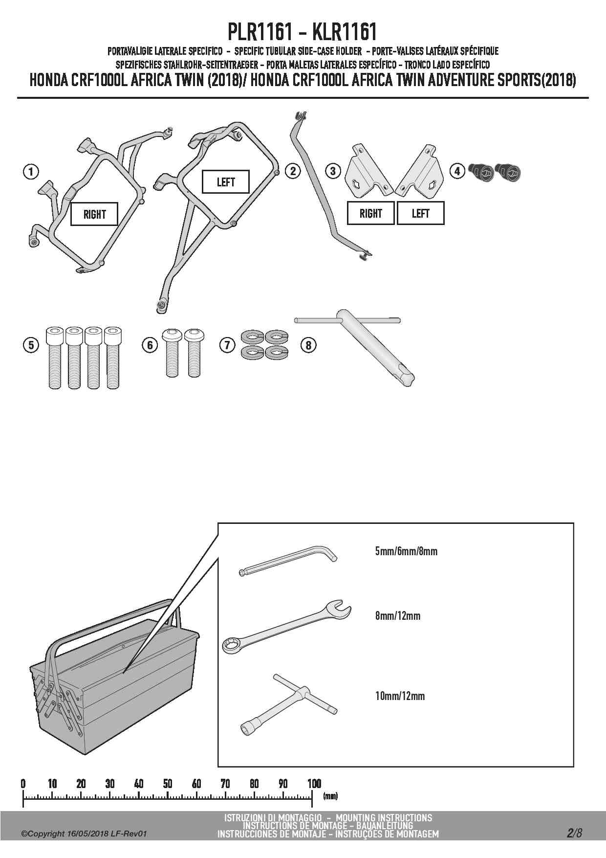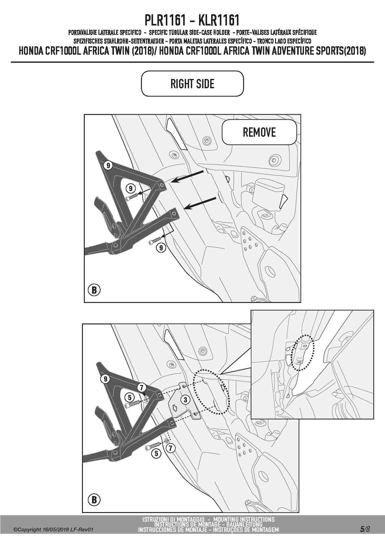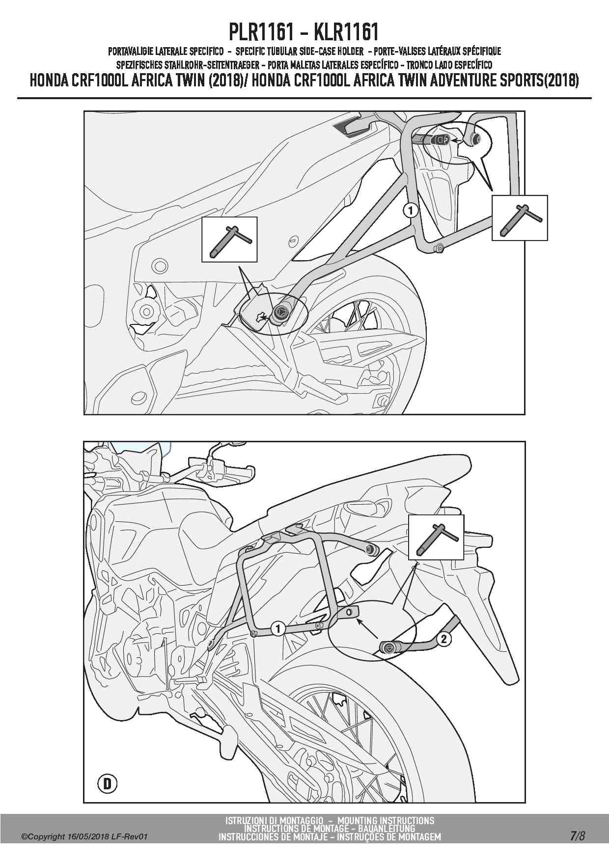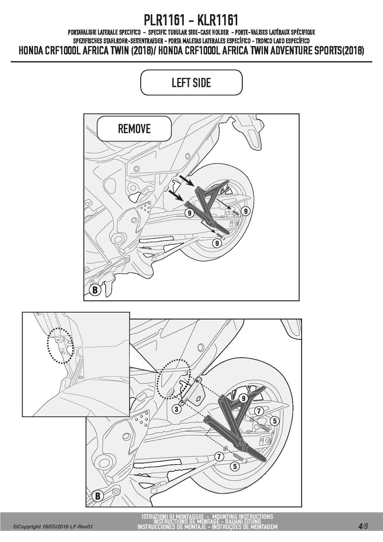 Dodatkowe adnotacje do stelaży bocznych Givi PLR1161: