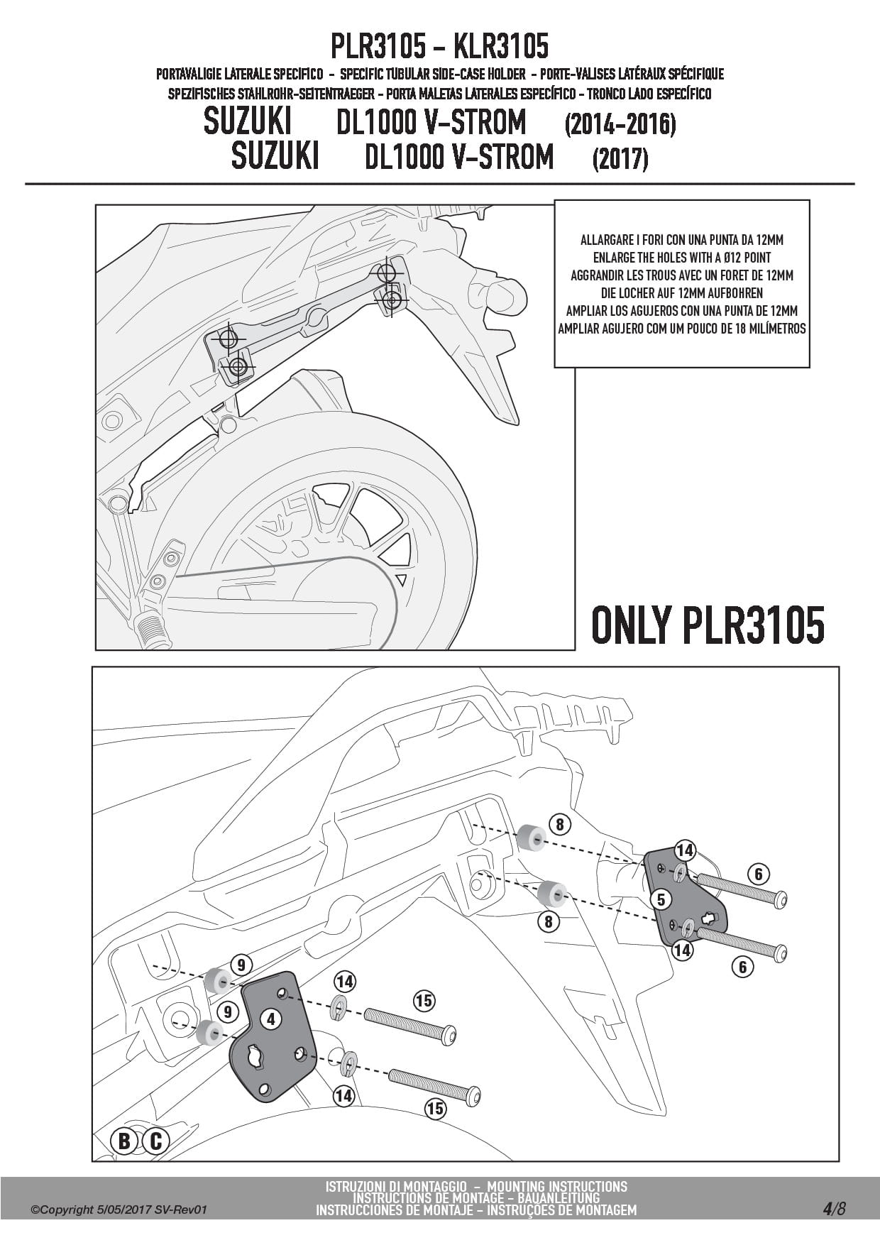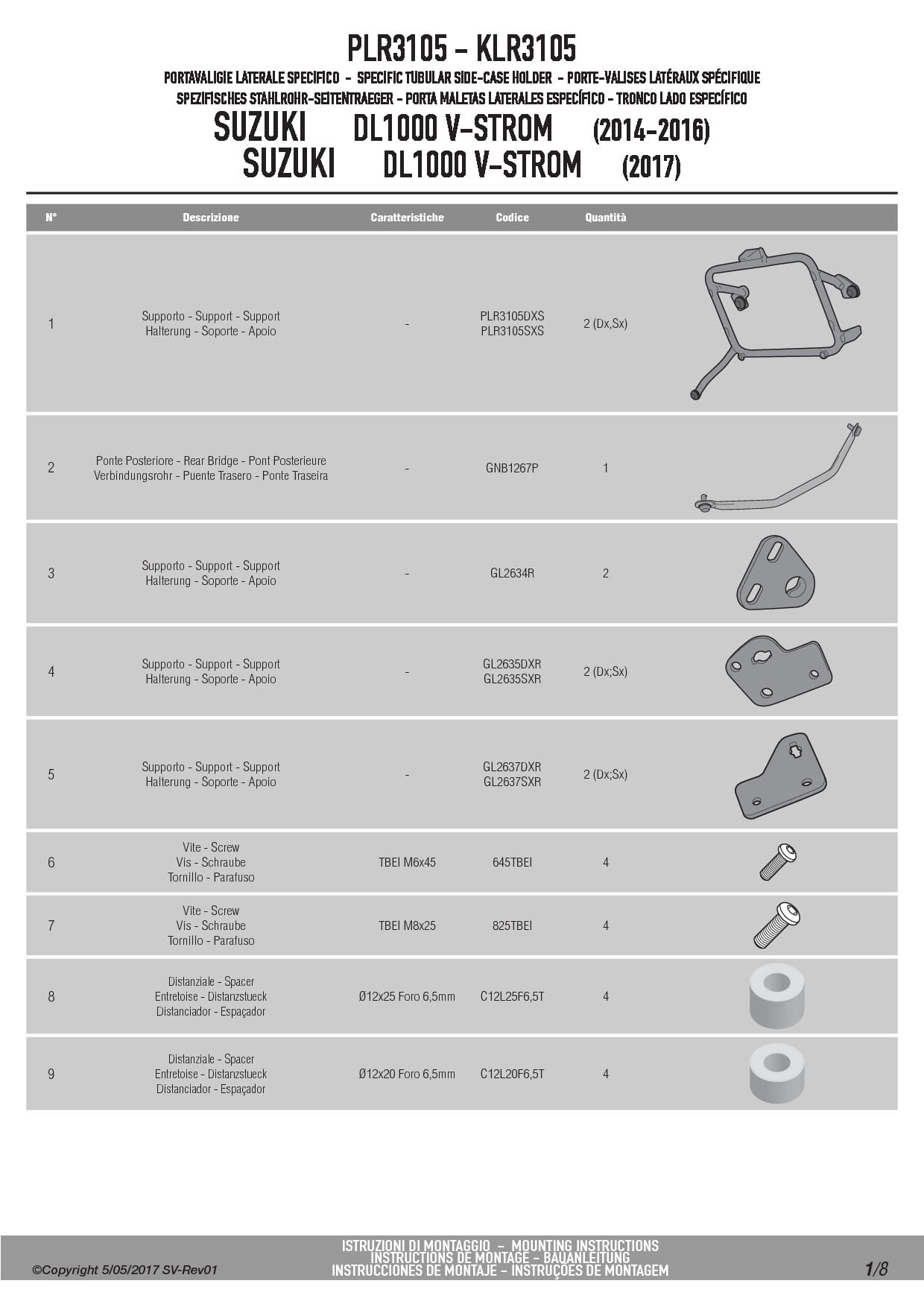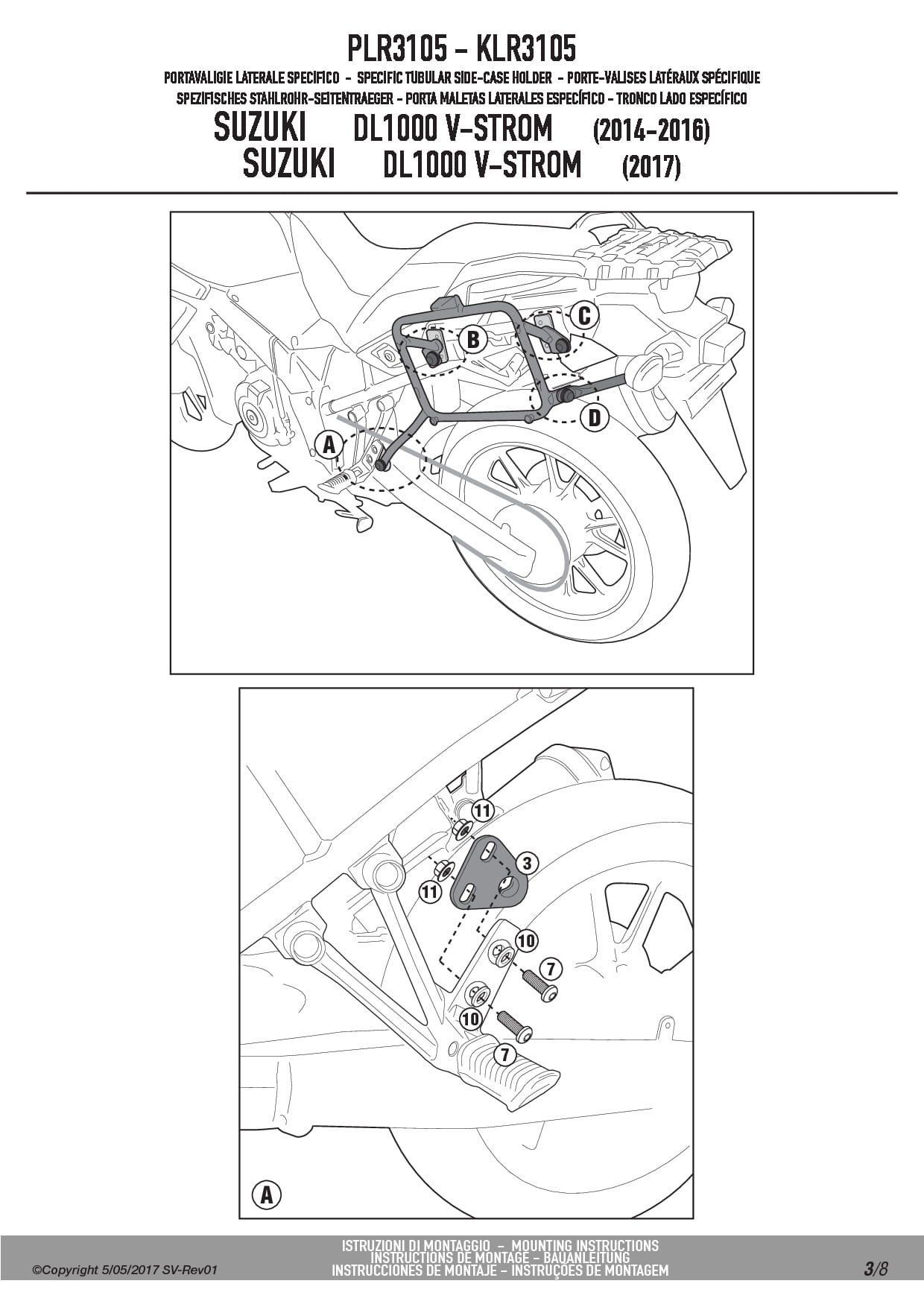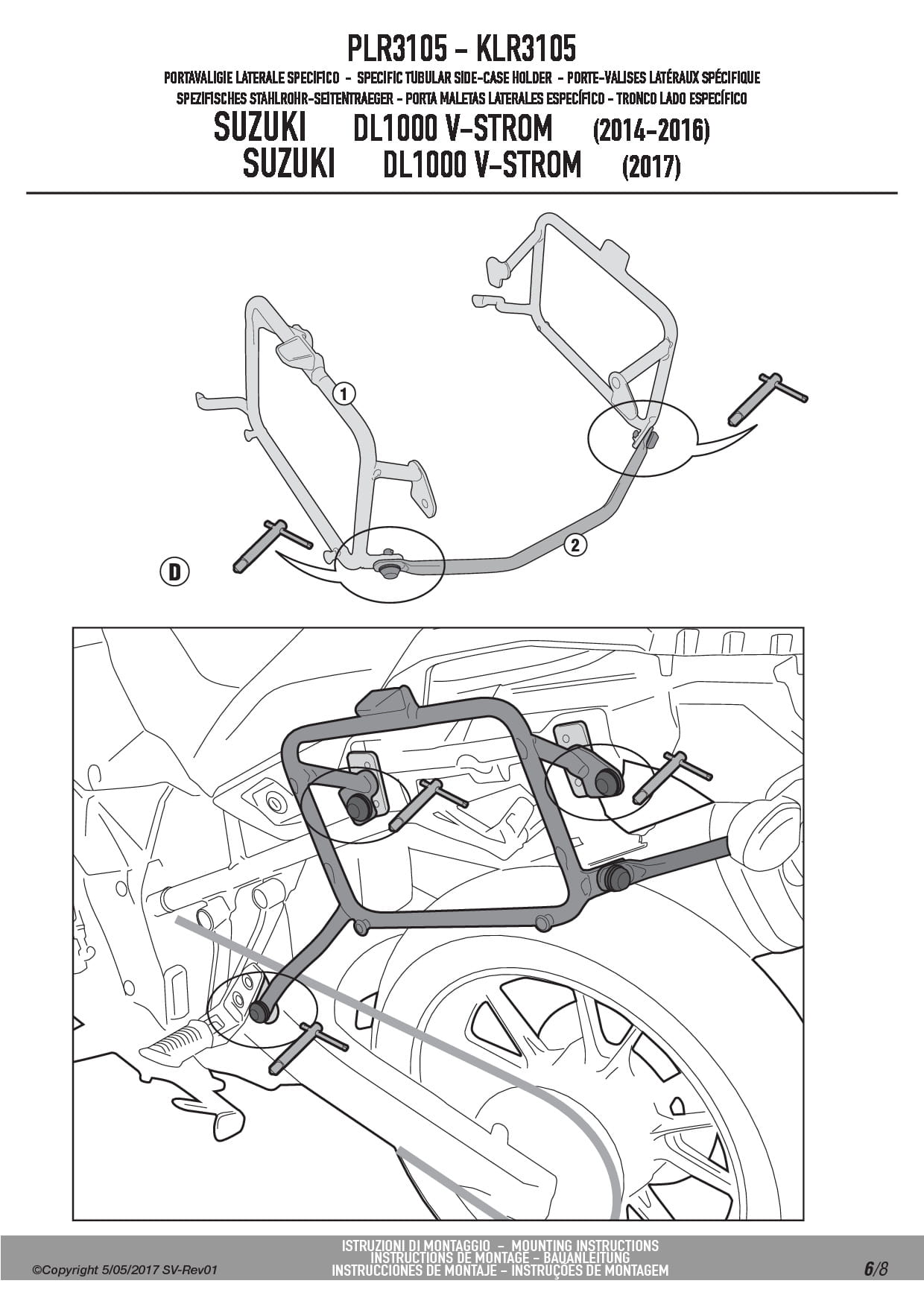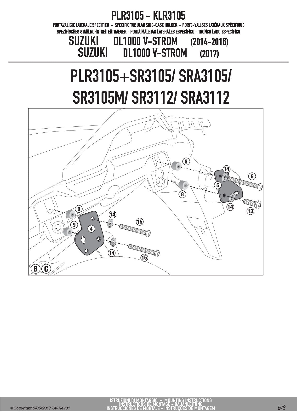 Stelaż kufrów bocznych Givi PLR3105 do motocykla Suzuki DL 1000 V-Strom (14-19)
