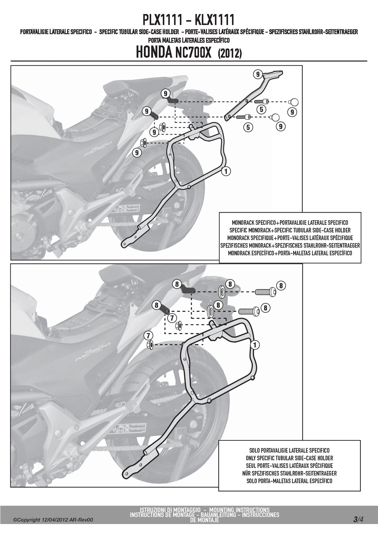 Dodatkowe adnotacje do stelaży bocznych Givi PLX1111: