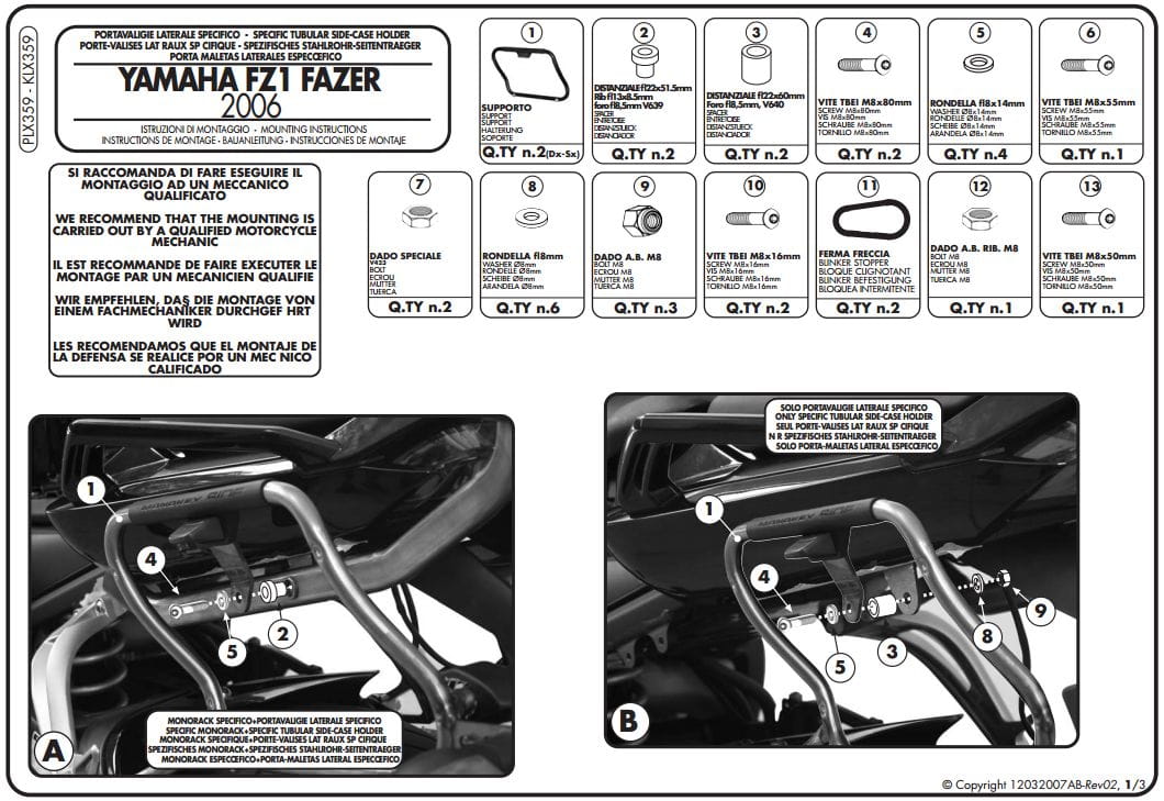 Stelaż kufrów bocznych Givi PLX359 do motocykla Yamaha FZ1 1000 / FZ1 1000 Fazer (06-15)