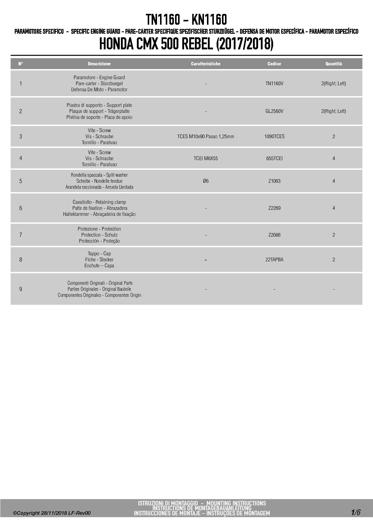 Givi TN1160 Gmole, osłony silnika Honda CMX 500 Rebel (17-25)