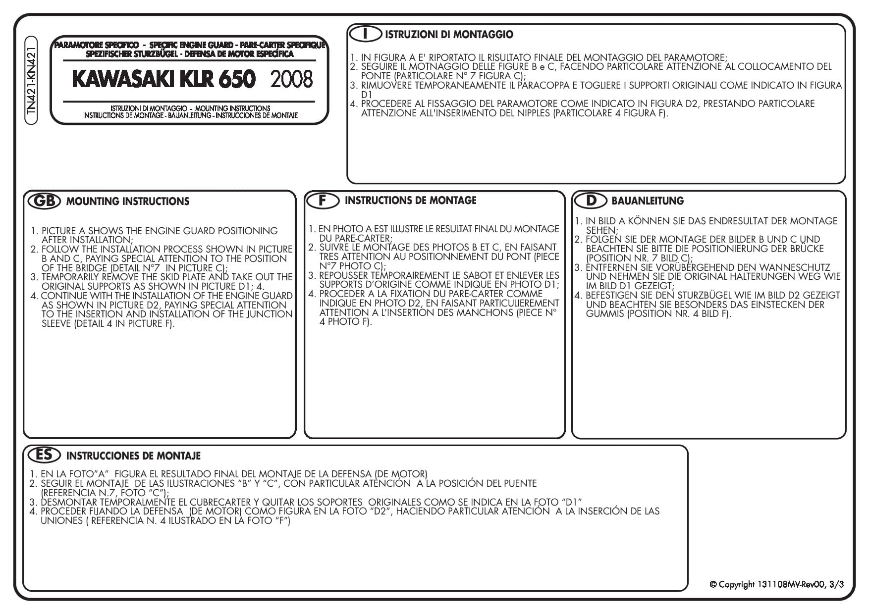 Givi TN421 Gmole, osłony silnika Kawasaki KLR 650 Enduro (07-21)