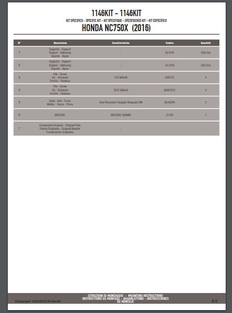 Givi 1146KIT Kit montażowy stelaża bocznego Honda NC750S/X (16-20)