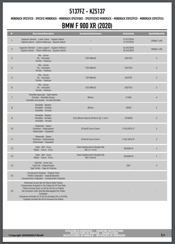 Stelaż kufra centralnego Givi 5137FZ do motocykla BMW F 900 XR / R (20-25)