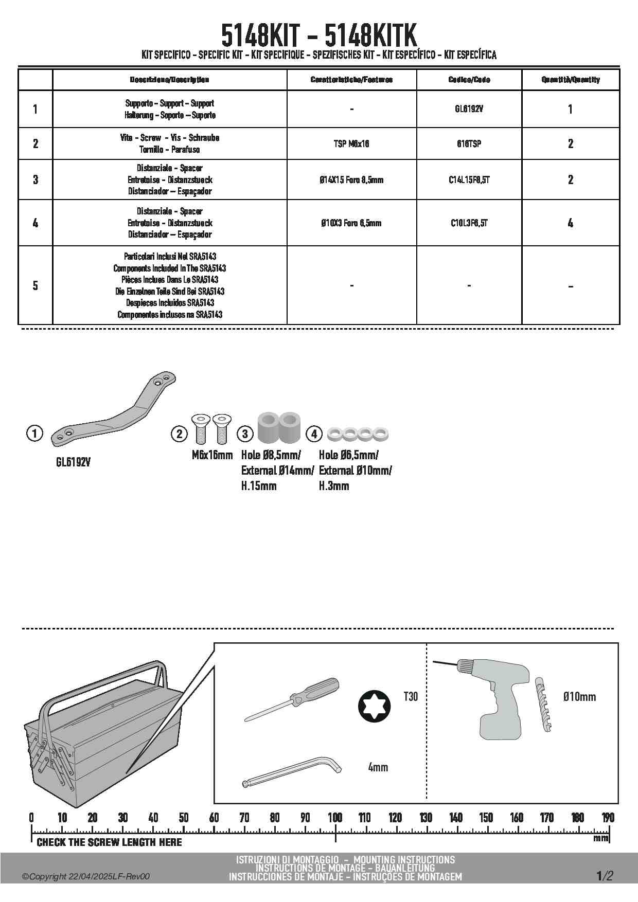 Dedykowany zestaw mocujący do stelaża centralnego Givi SRA5143 do pojazdów: