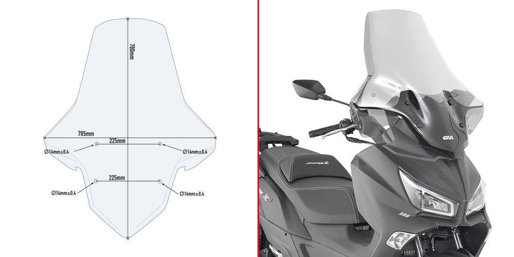 Givi 7056DT Szyba przezroczysta SYM Cruisym 300 (17-25) / Joymax Z 300 (19-20) / Z+ 300 (21-24) / Z 300 Z E5+ (25) / Joyride 300 (22-25)
