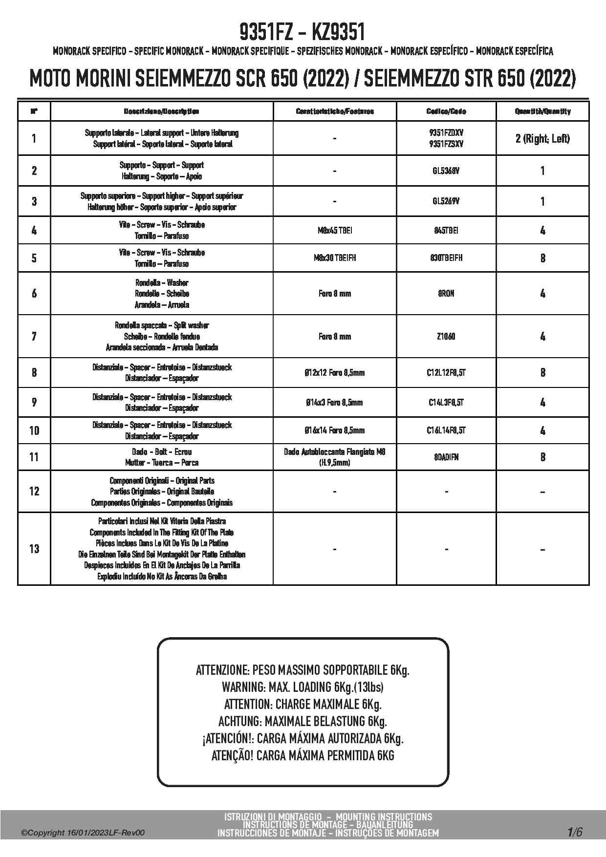Givi 9351FZ Stelaż kufra centralnego Moto Morini Seiemmezzo SCR/STR 650 (22-25)