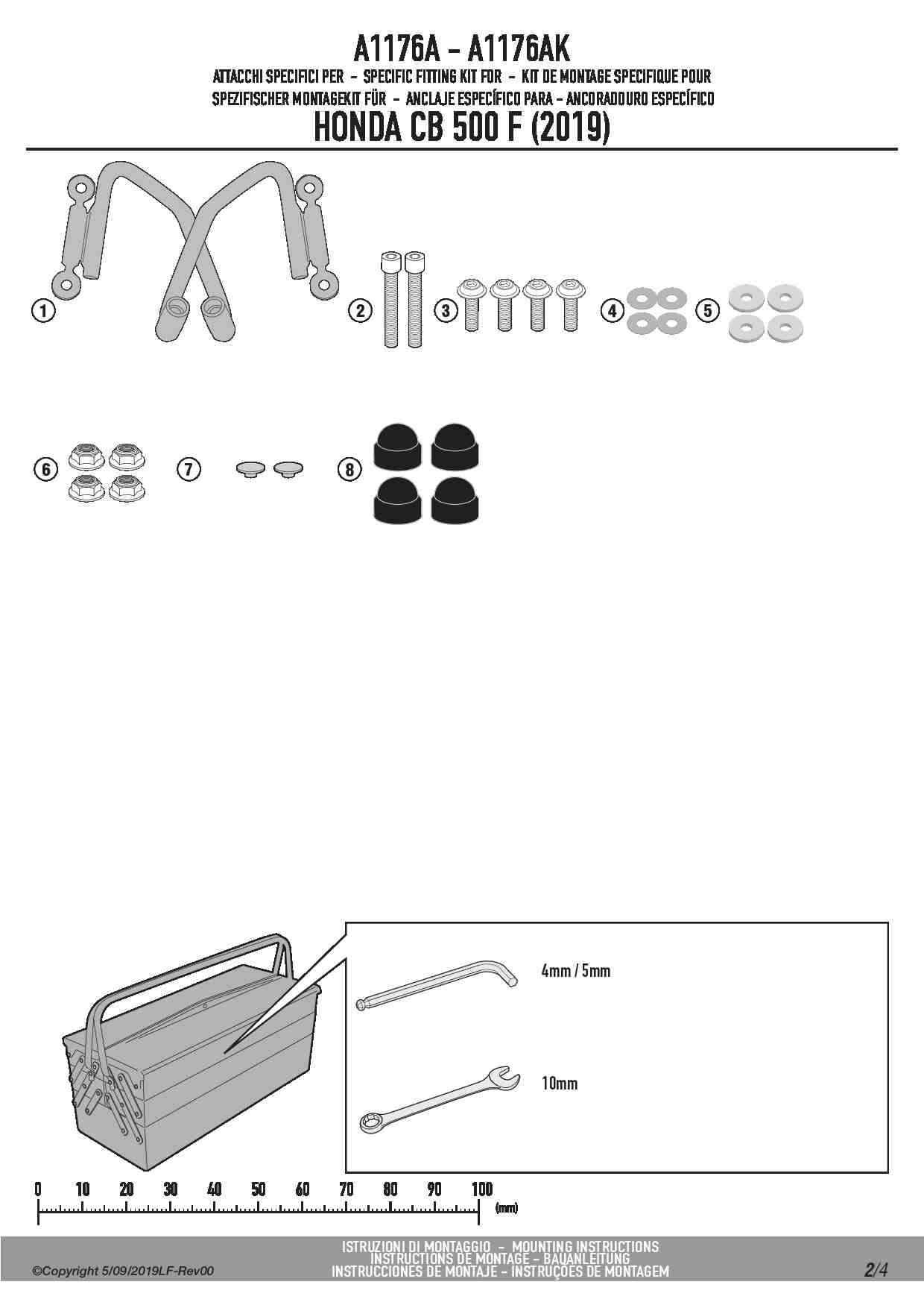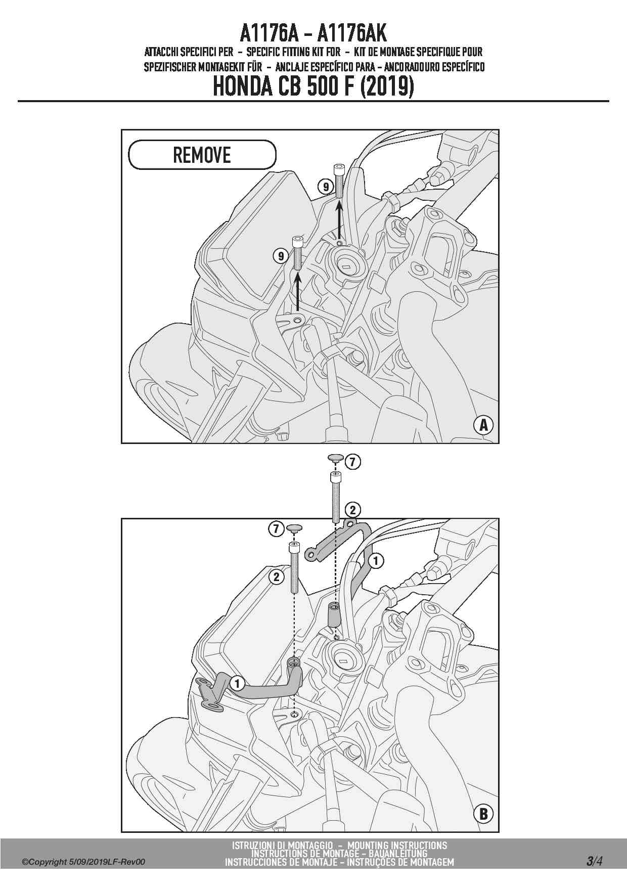 Dedykowany kit montażowy, który umożliwia zamontowanie szyby Givi 1176A / 1176ABL na motocyklu Honda CB 500 F (19-23).