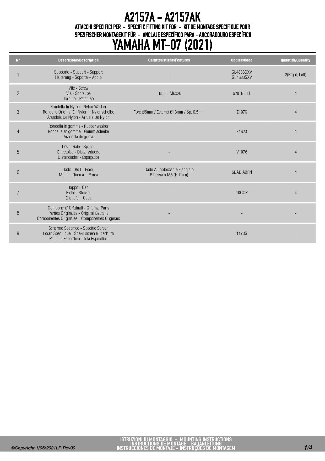 Zestaw montażowy Givi A2157A