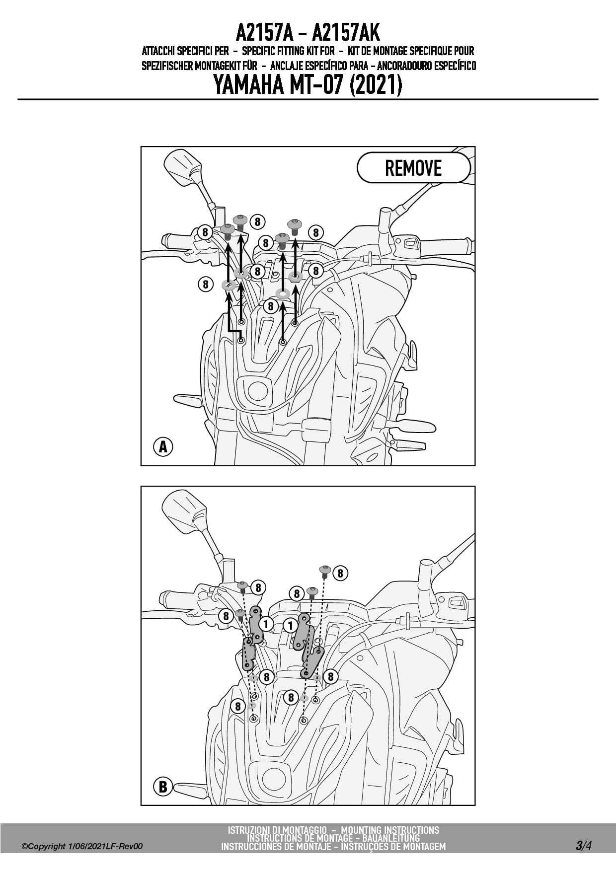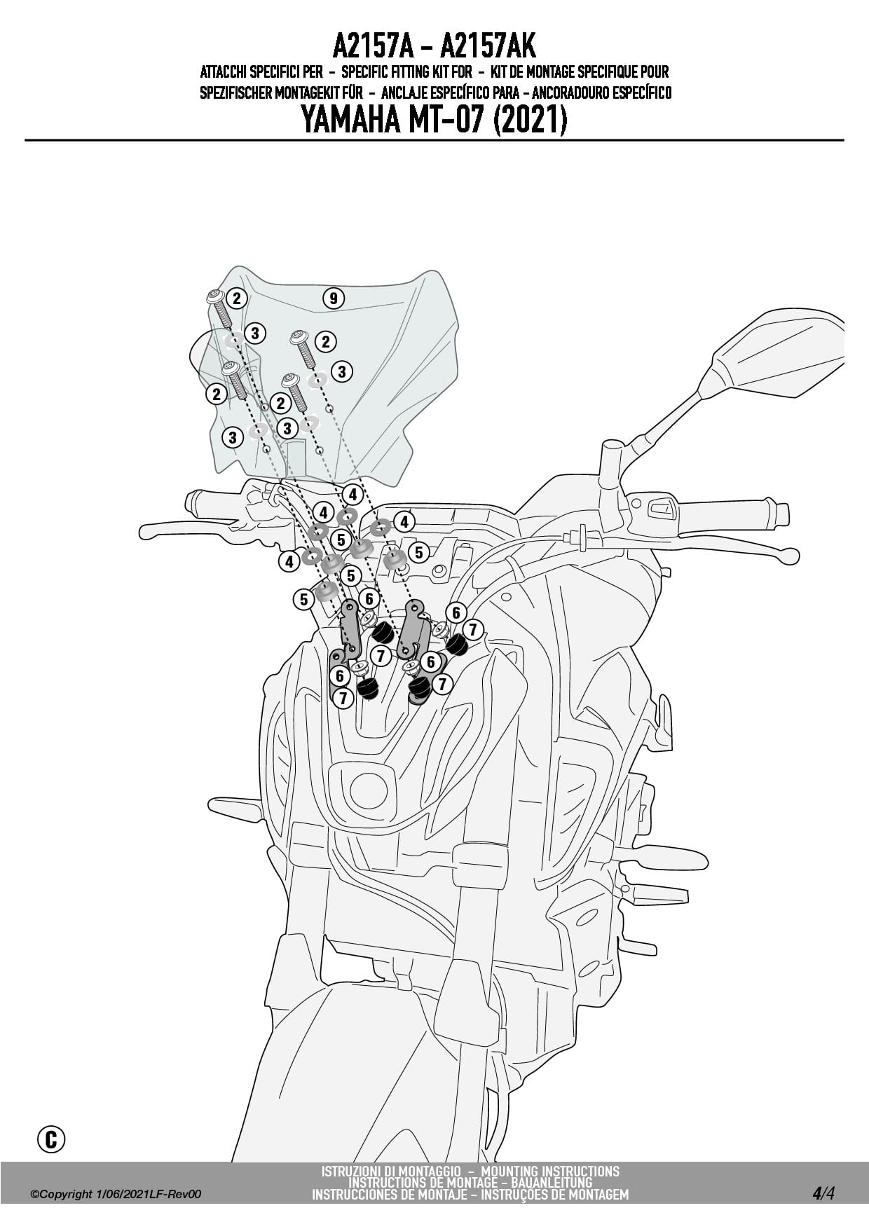 Givi A2157A Mocowanie szyby 1173S Yamaha MT-07 (21-24)