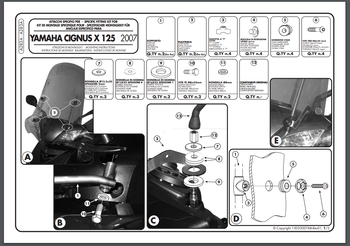 Dedykowany kit montażowy, który umożliwia zamontowanie szyby Givi 102A oraz 128A na skuterze MBK Flame X 125 (07-12) / Yamaha Cignus X 125 (07-15).