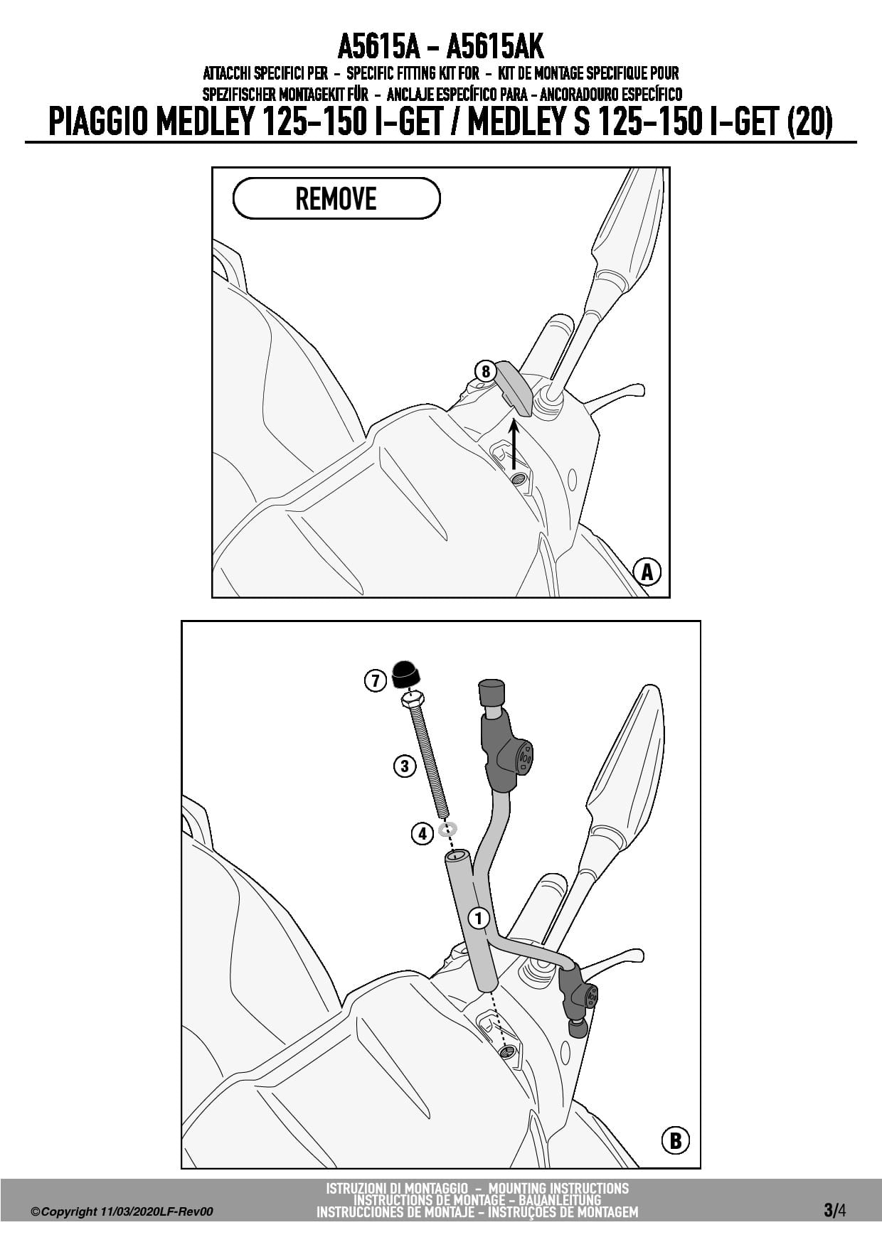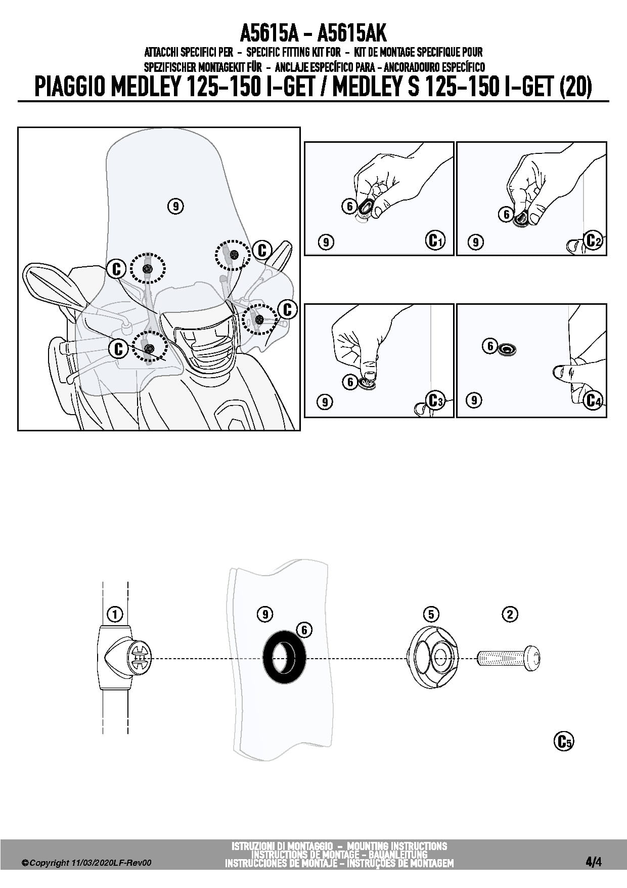 Givi A5615A Mocowanie szyby 7057A / 7057S Piaggio Medley 125-150-200 /S/ i-GET (20-25)