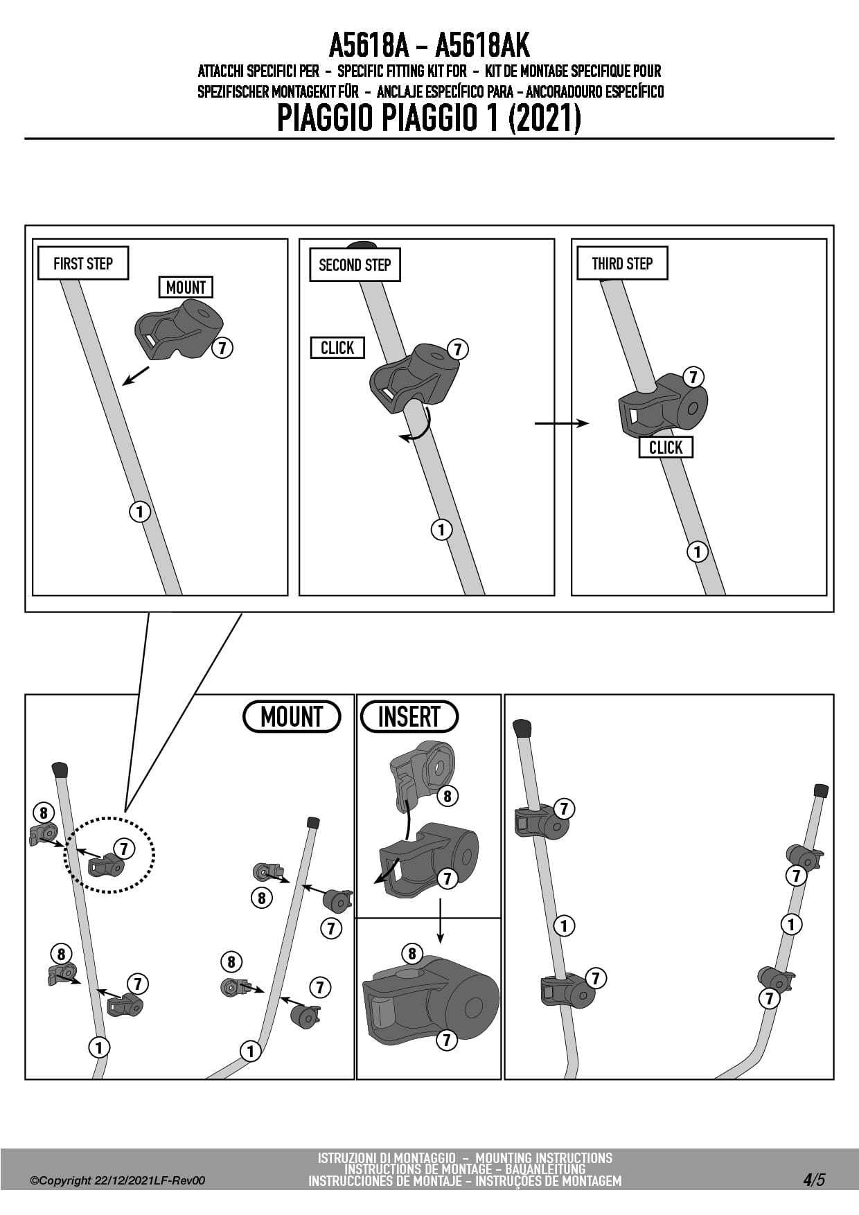 Givi A5618A Mocowanie szyby D1181ST PIAGGIO Piaggio 1 (21-25)