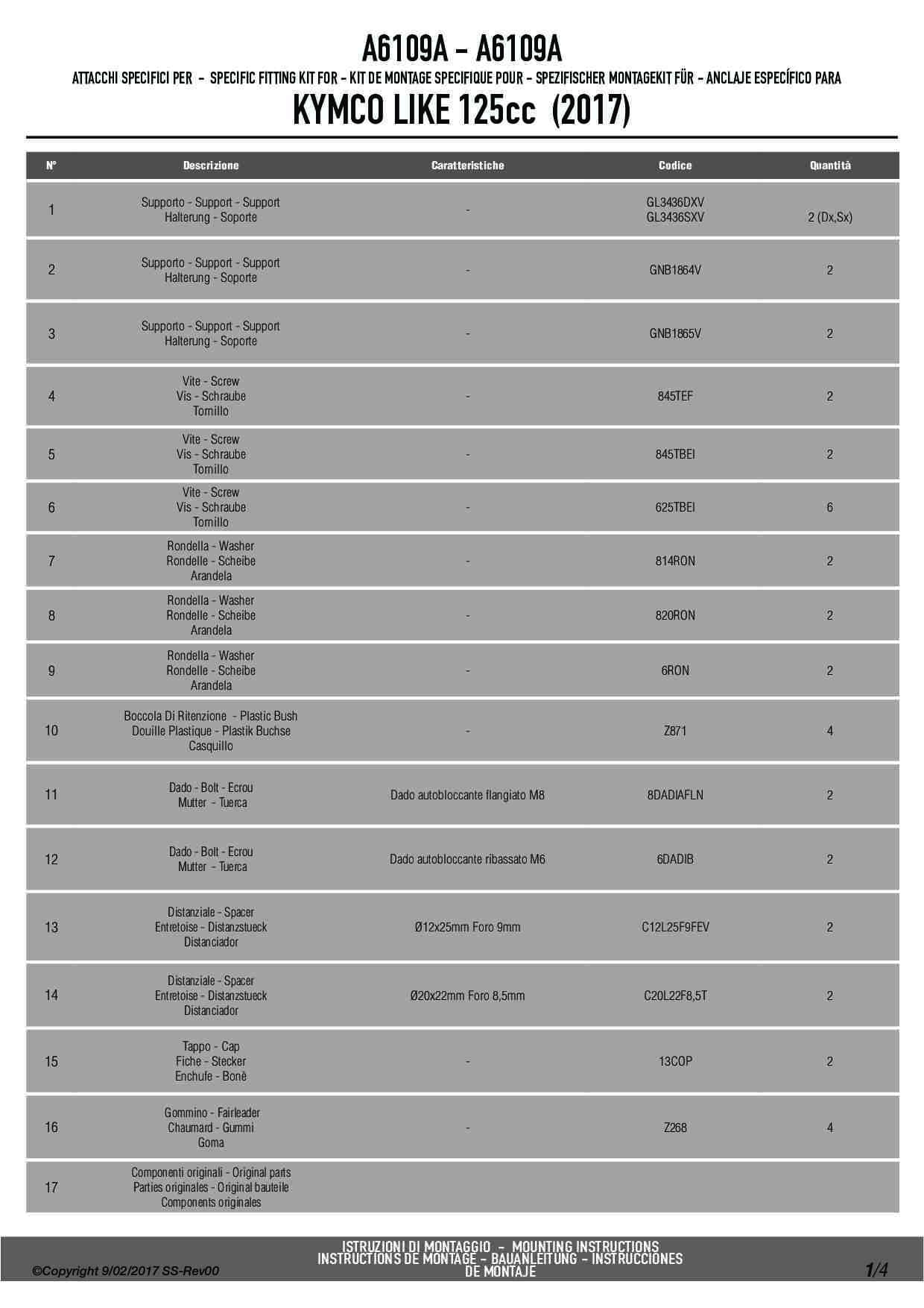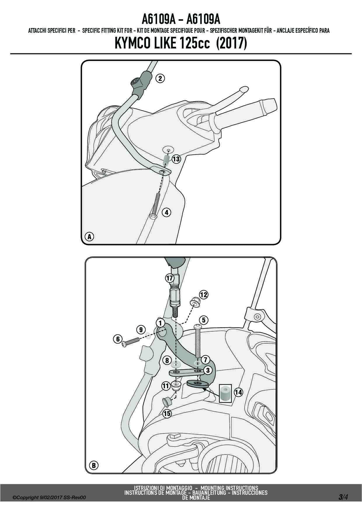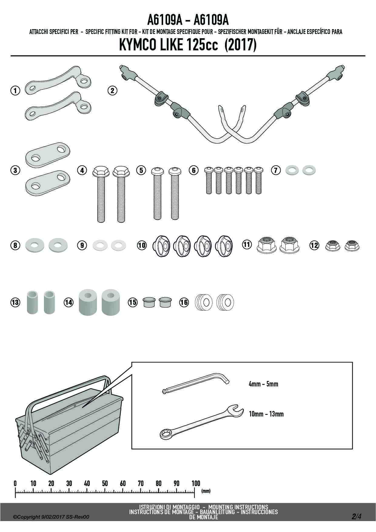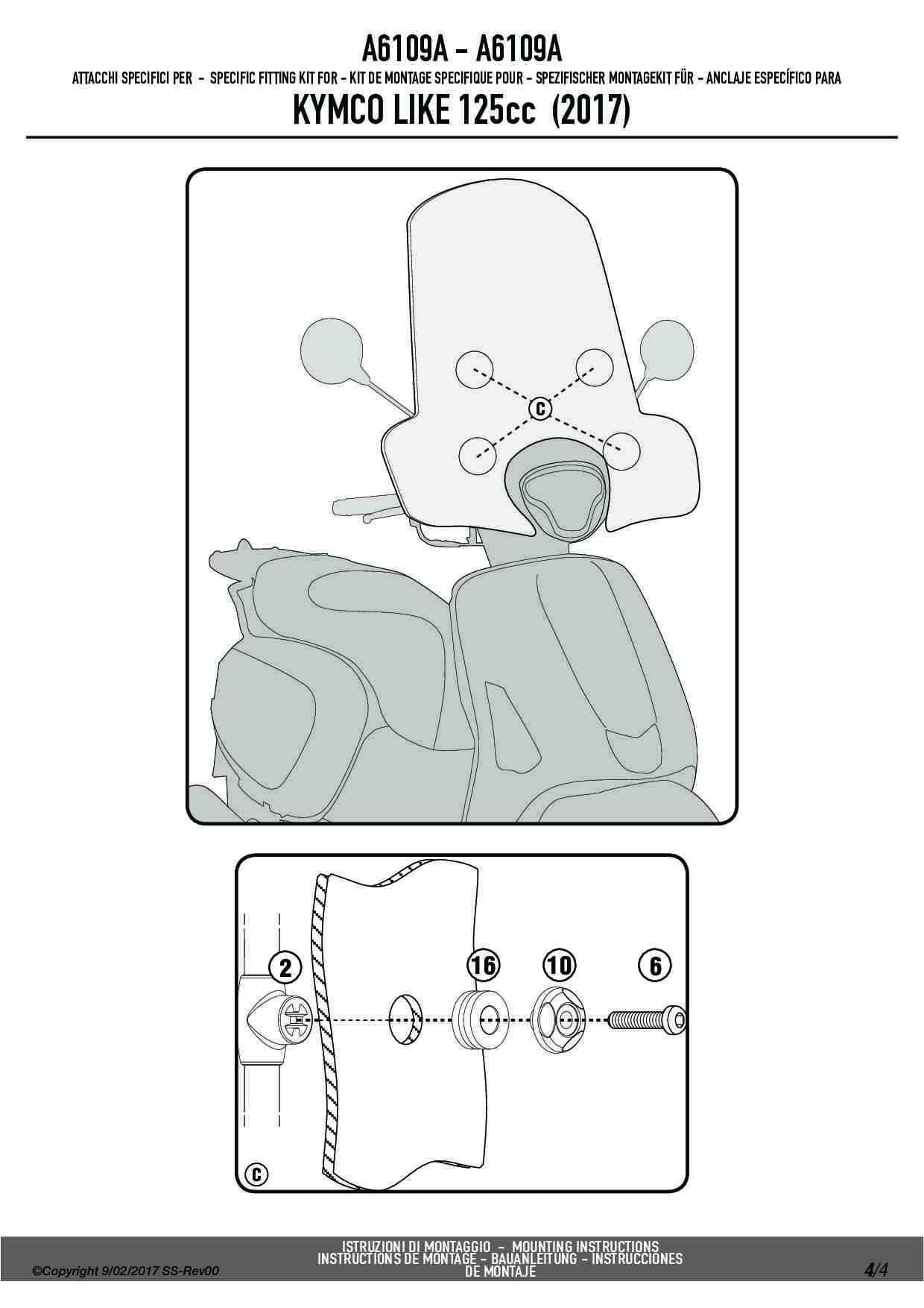 Dedykowany kit montażowy, który umożliwia zamocowanie szyby Givi 6109A do skutera Kymco Like 50-125-150.