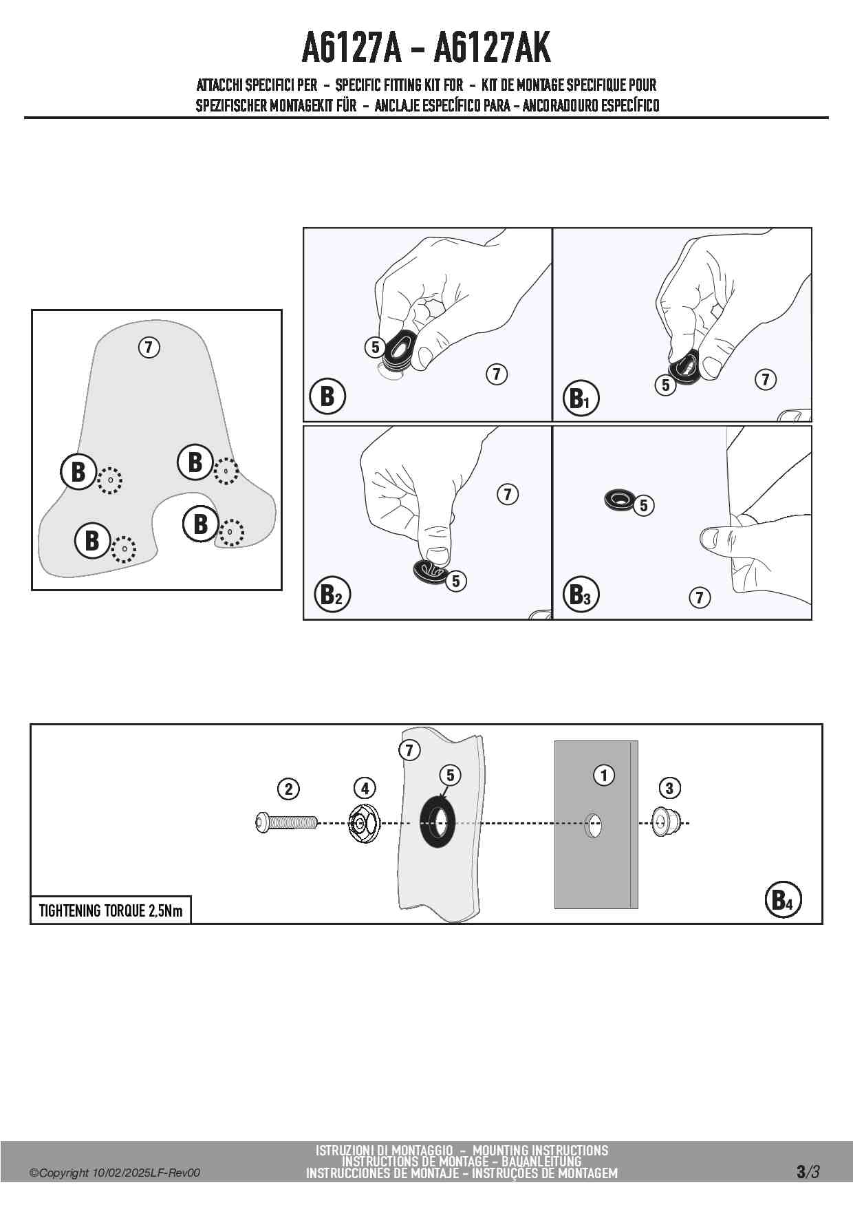 Dedykowany kit montażowy, który umożliwia zamocowanie szyby Givi 2114A.