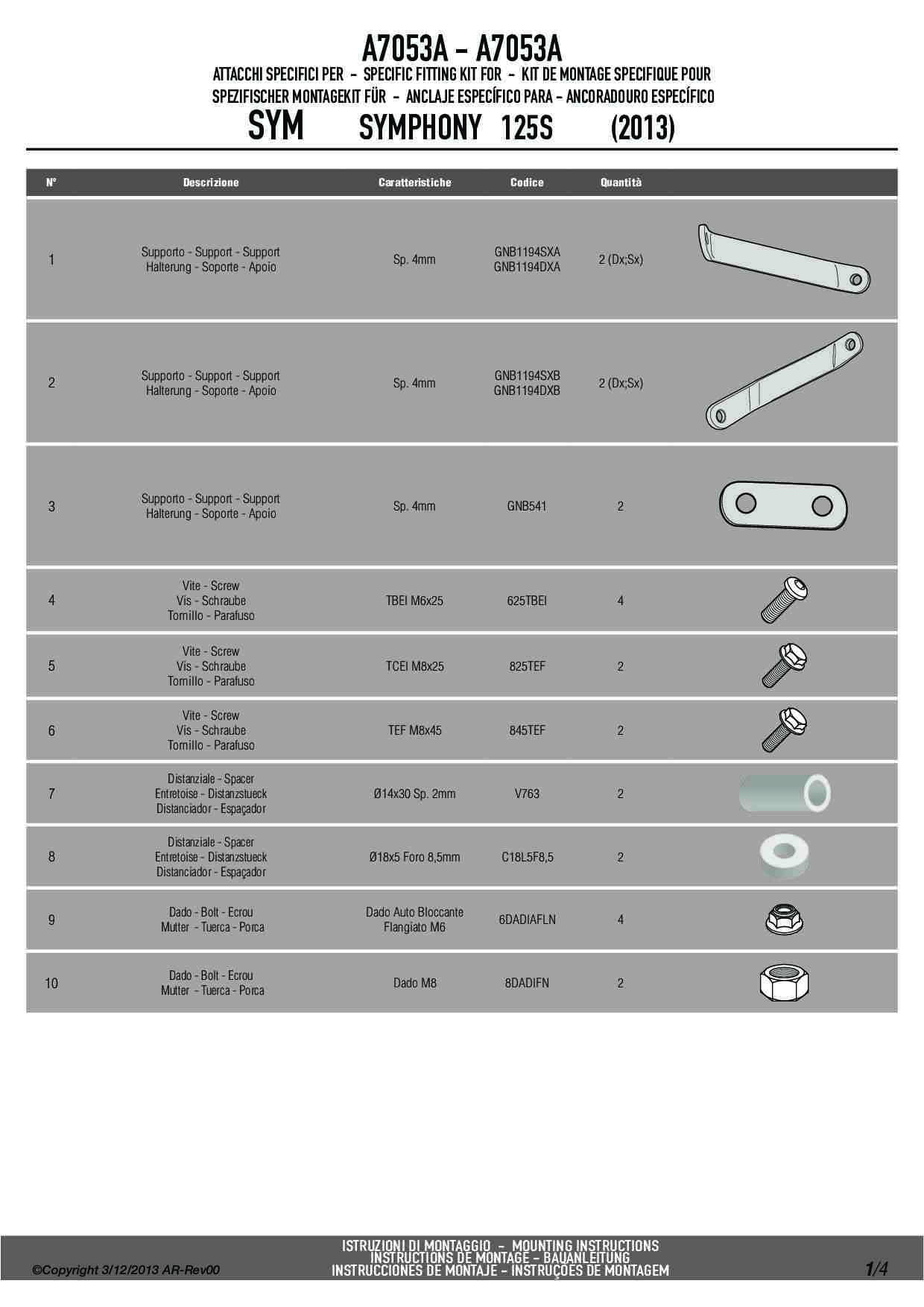 Dedykowany kit montażowy, który umożliwia zamocowanie szyby Givi 7053A na skuterze Sym Symphony S 50-125-150-151 (09-20).