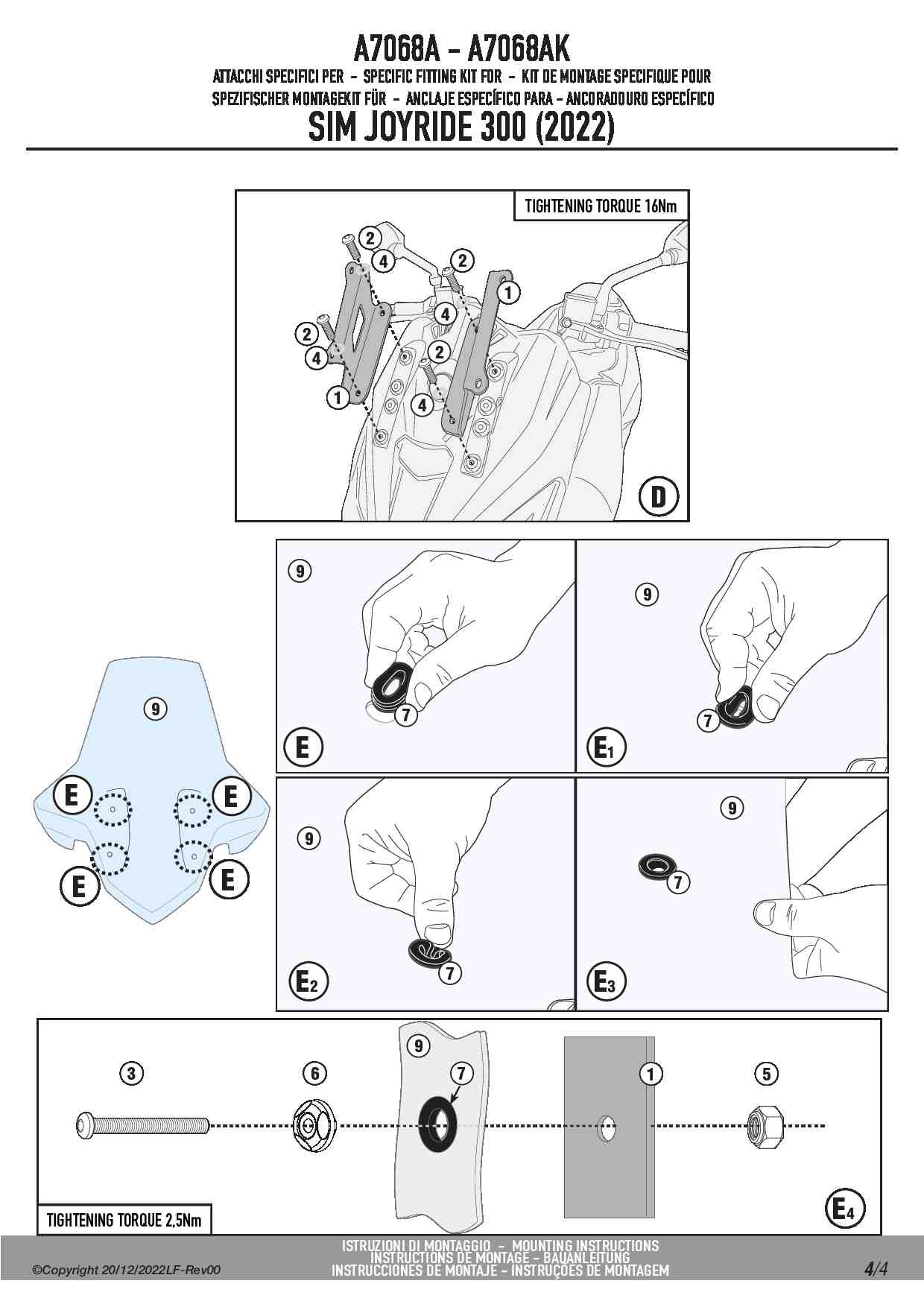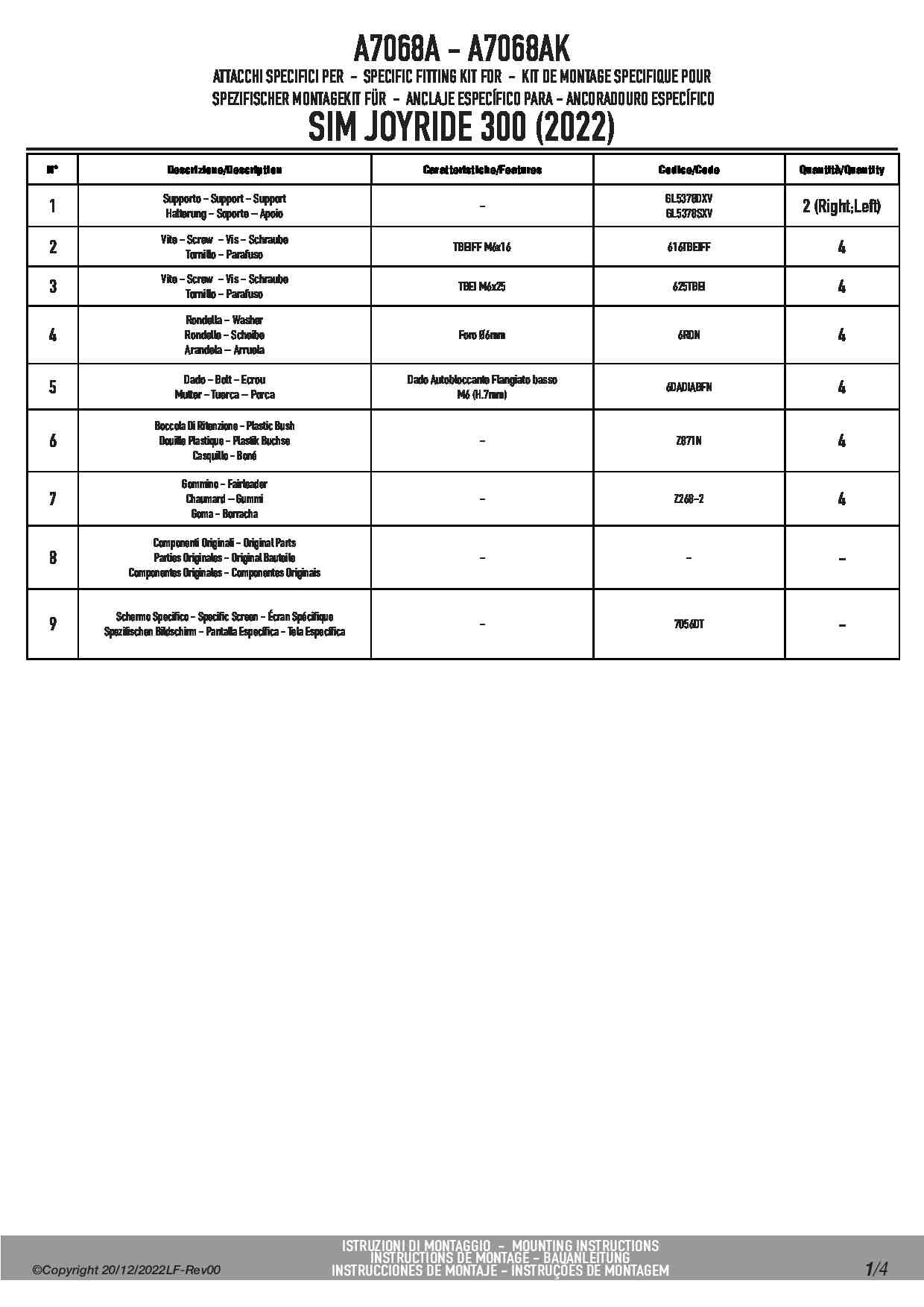 Dedykowany kit montażowy, który umożliwia zamontowanie szyby Givi 7056DT na skuterze Sym Joyride 300.