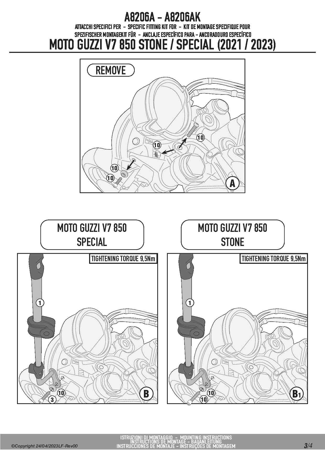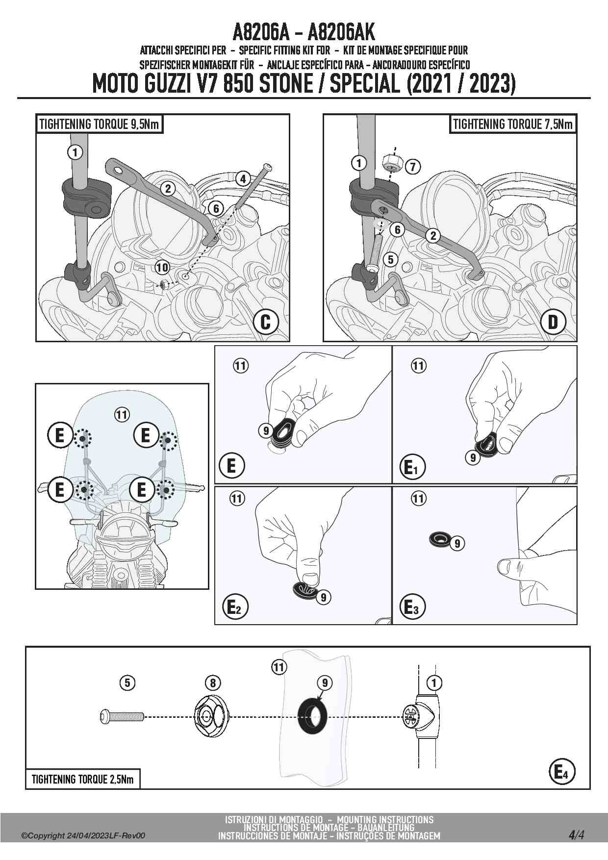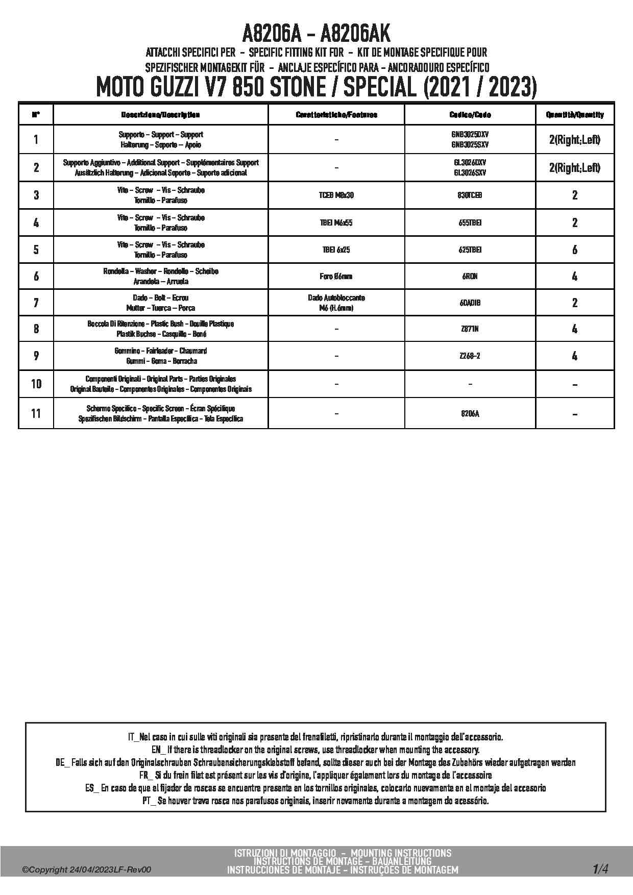 Dedykowany kit montażowy, który umożliwia zamontowanie szyby Givi 8206A do motocykla Moto Guzzi V7 850 Stone / Special.