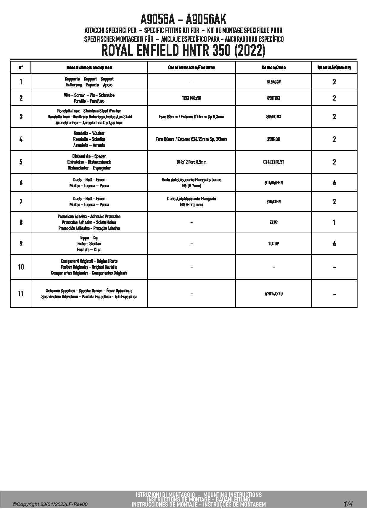 Dedykowany kit montażowy, który umożliwia zamocowanie szyby Givi A201 oraz A210 do motocykla Royal Enfield HNTR 350.