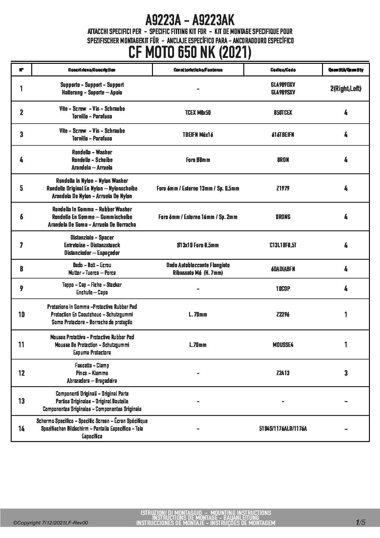 Dedykowany kit montażowy, który umożliwia zamocowanie szyby Givi 1176A / 1176ABL do motocykla CFMoto 650 NK (21-23).