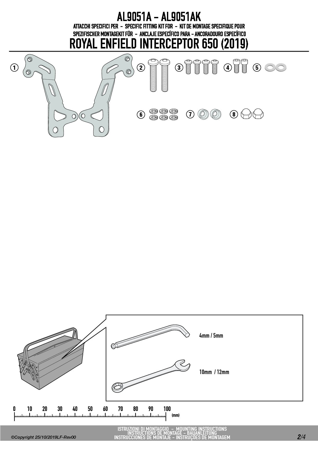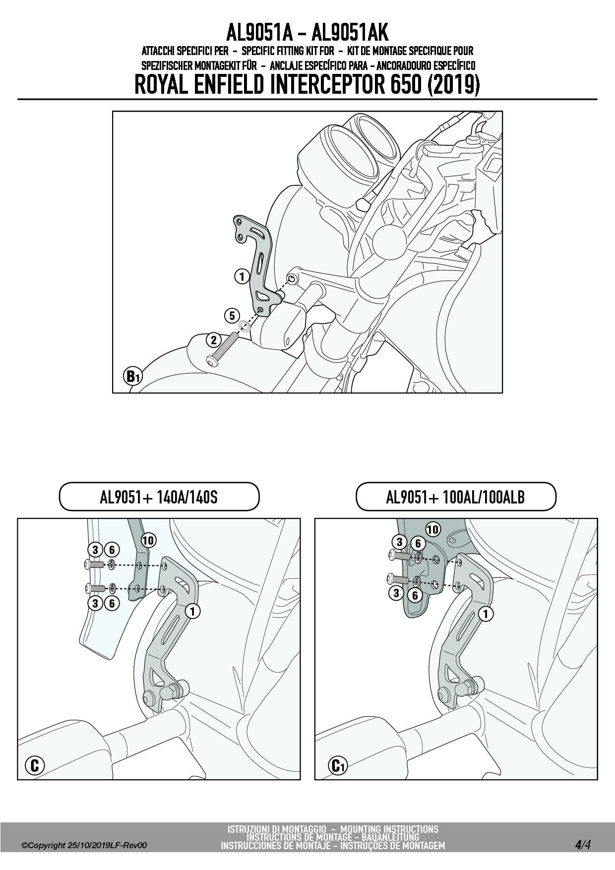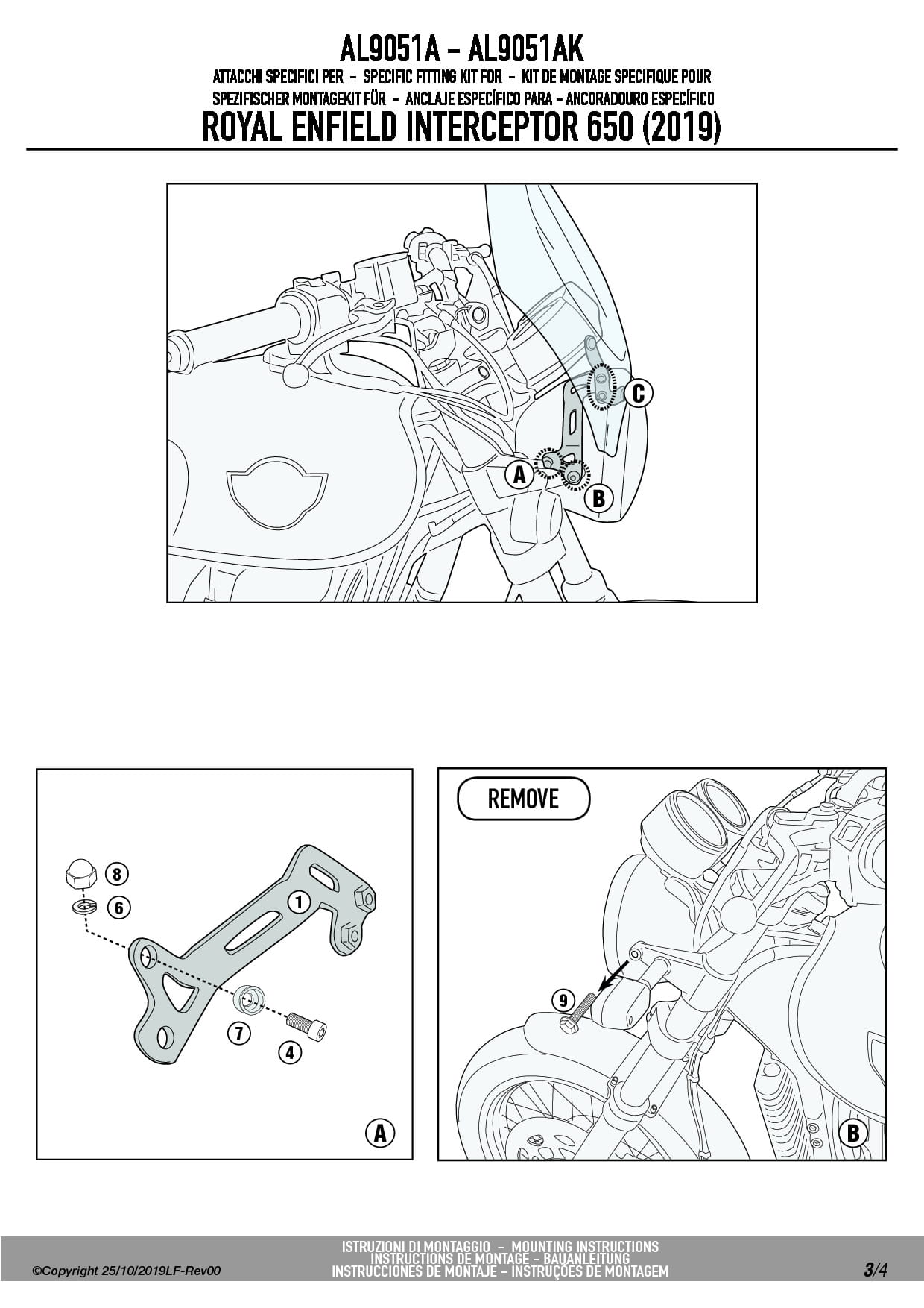 Dedykowane mocowanie AL9051A do szyb Givi 100AL, 100ALB, 140A oraz 140S do motocykla Royal Enfield Interceptor 650, Continental GT 650.