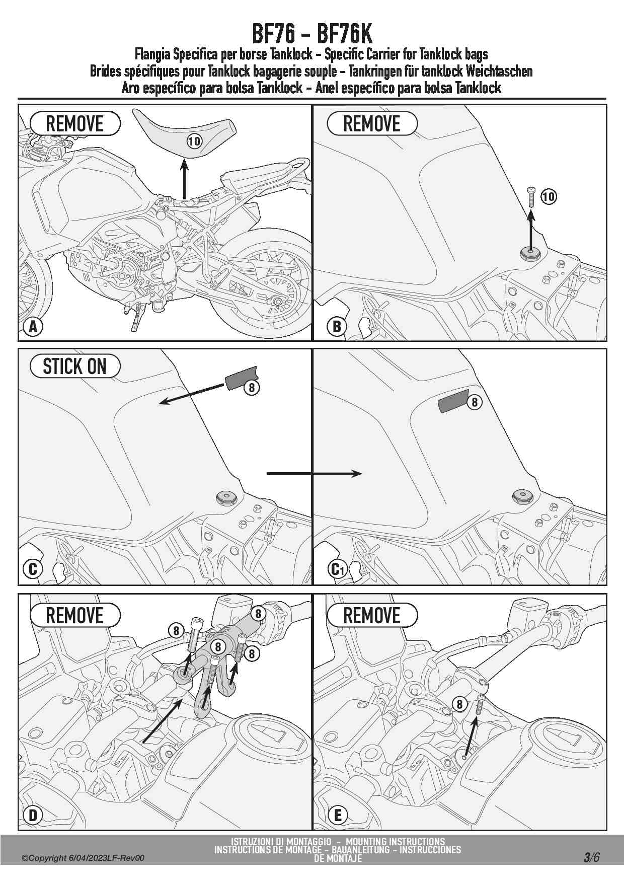 Mocowanie torby w systemie TANKLOCK na korek wlewu paliwa Givi BF76 do motocykla Ducati Desert X 937 (22-25)