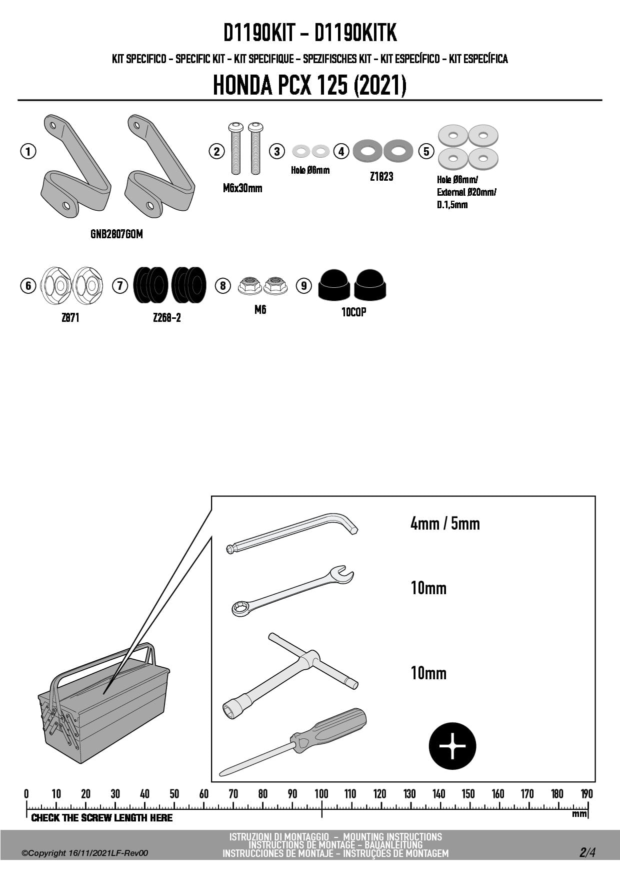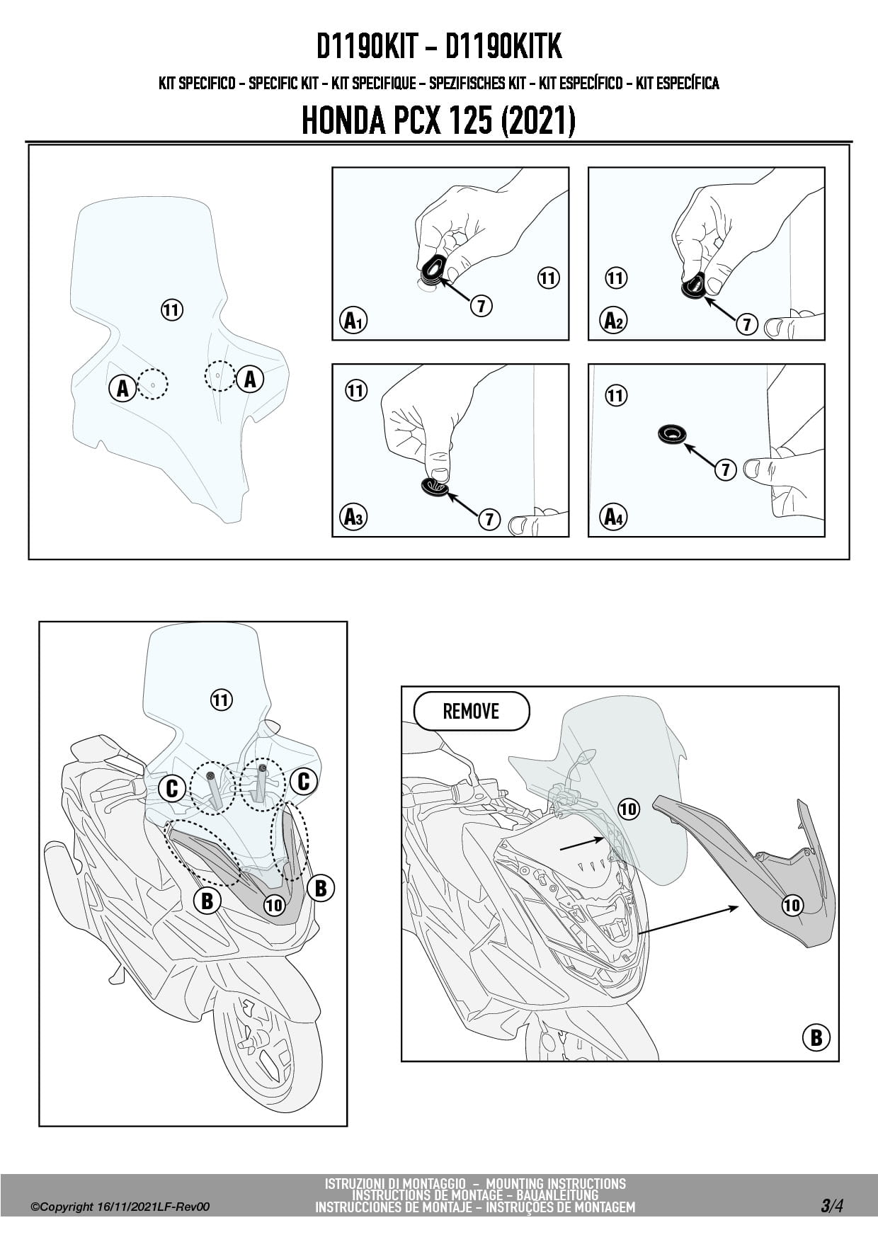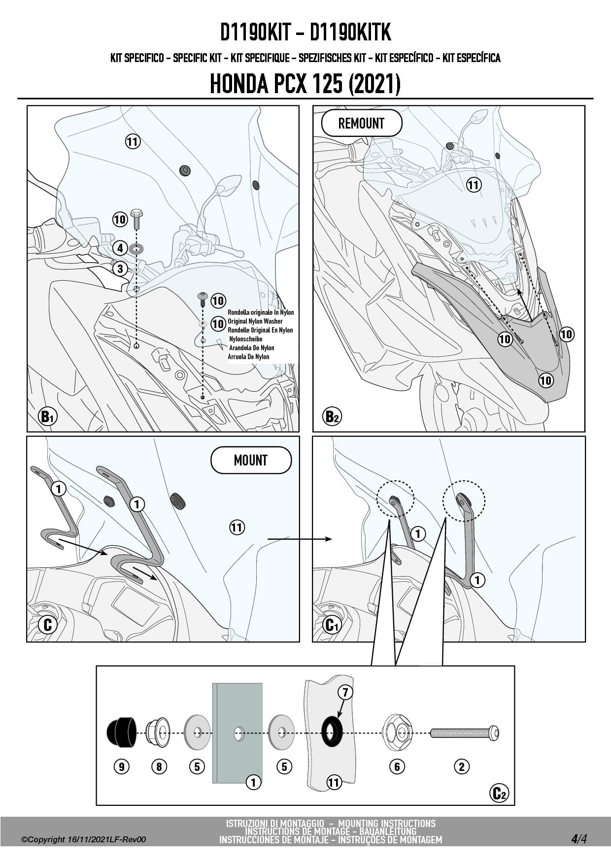 Givi D1190KIT zestaw montażowy do szyby 1190DT Honda PCX 125 (21-24)