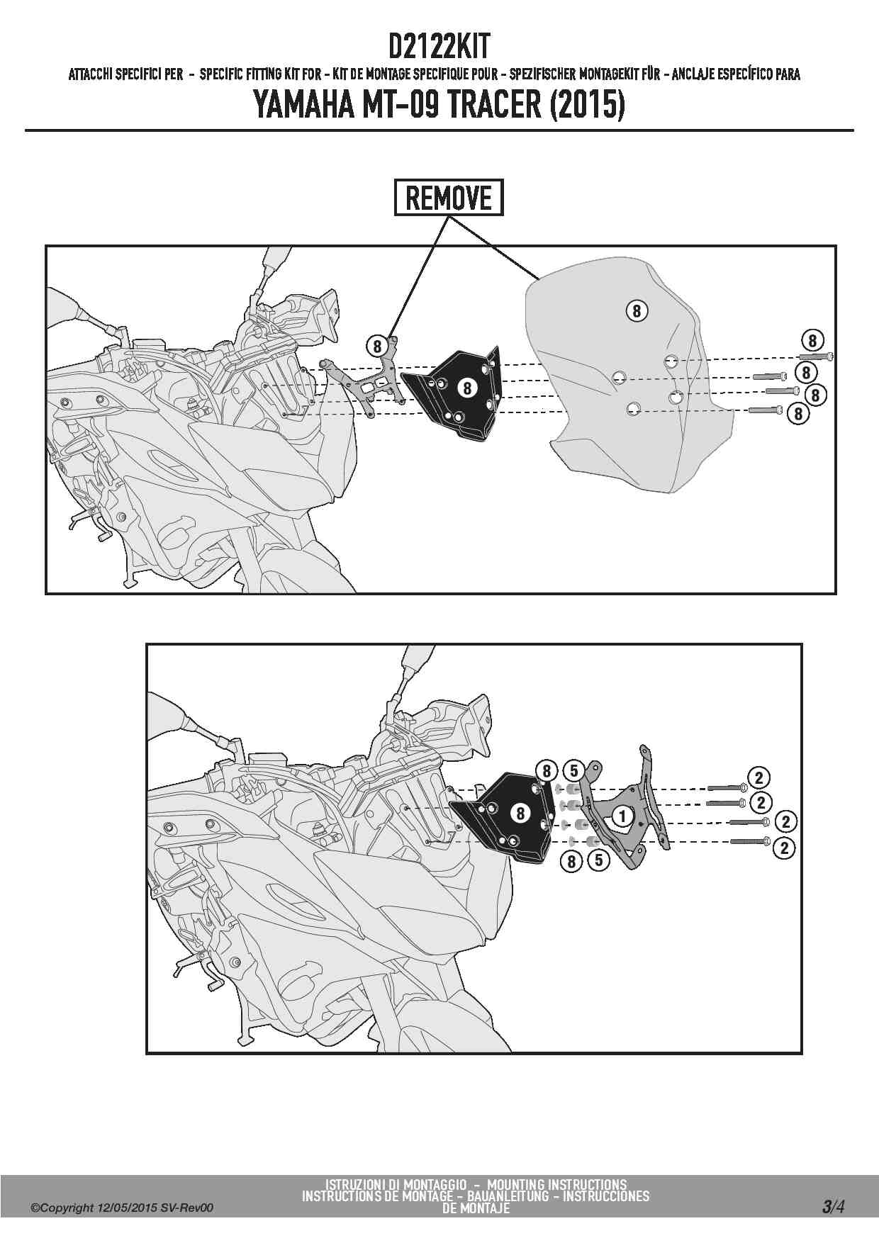 Dedykowany kit montażowy, który umożliwia zamontowanie szyby Givi 2122DT na motocyklu Yamaha MT-09 Tracer (15-17).
