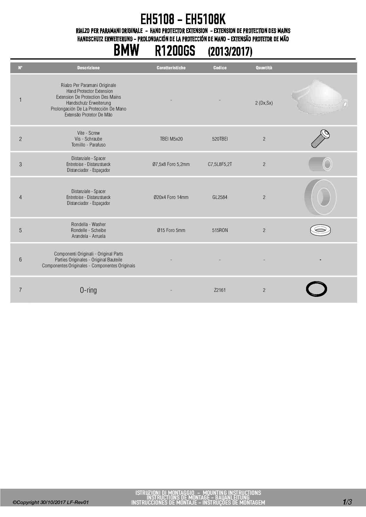 Podwyższenie oryginalnych handbarów Givi EH5108 do motocykla BMW F 800 GS Adventure (13-18) / F 850 GS (18-20) / S 1000 XR (15-19) / R 1200 GS (13-18) / R 1200 GS Adventure (14-18) / R 1250 GS (19-23) / R 1250 GS Adventure (19-24)