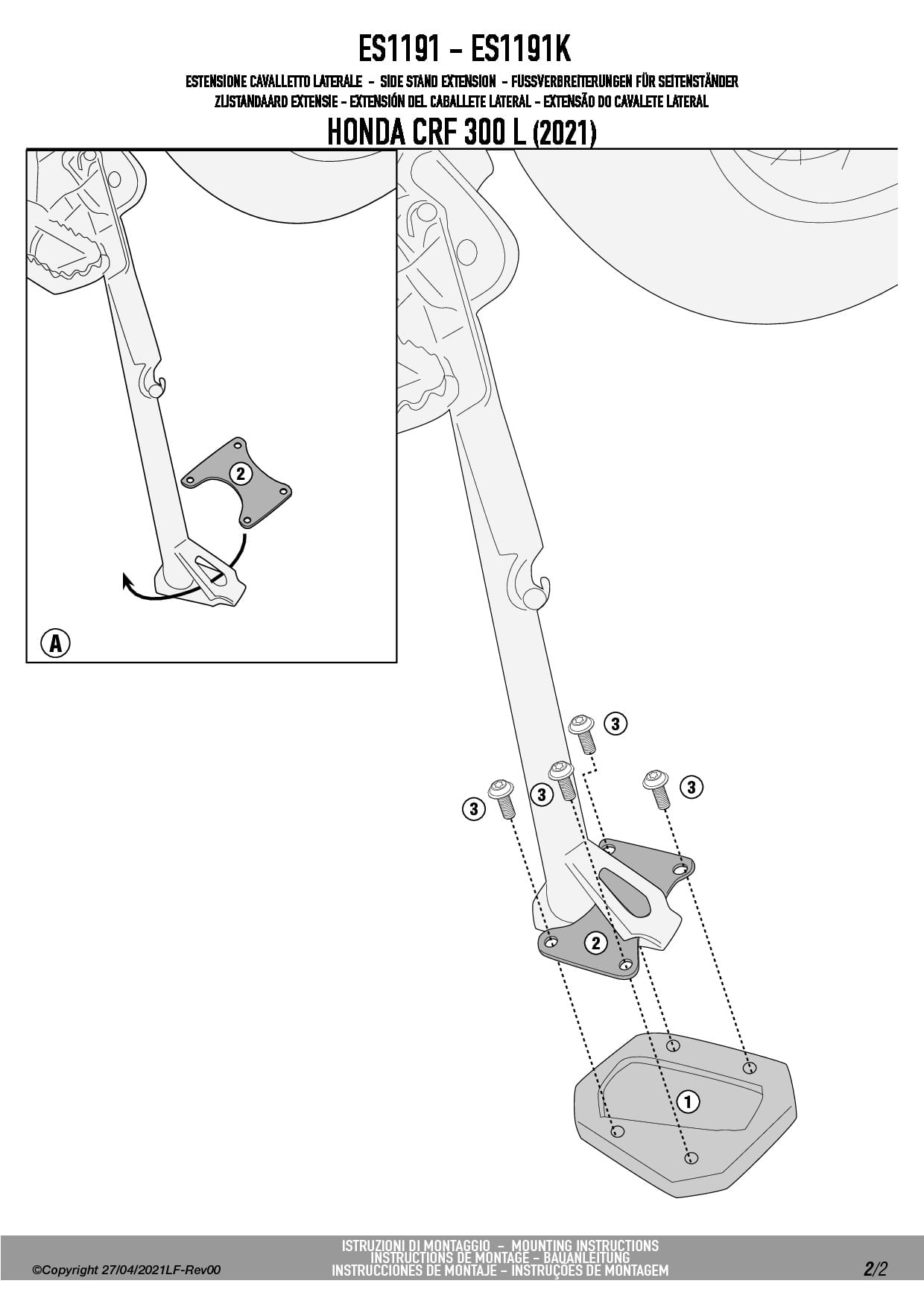Givi ES1191 Poszerzenie stopki bocznej Honda CRF300L (21-25)