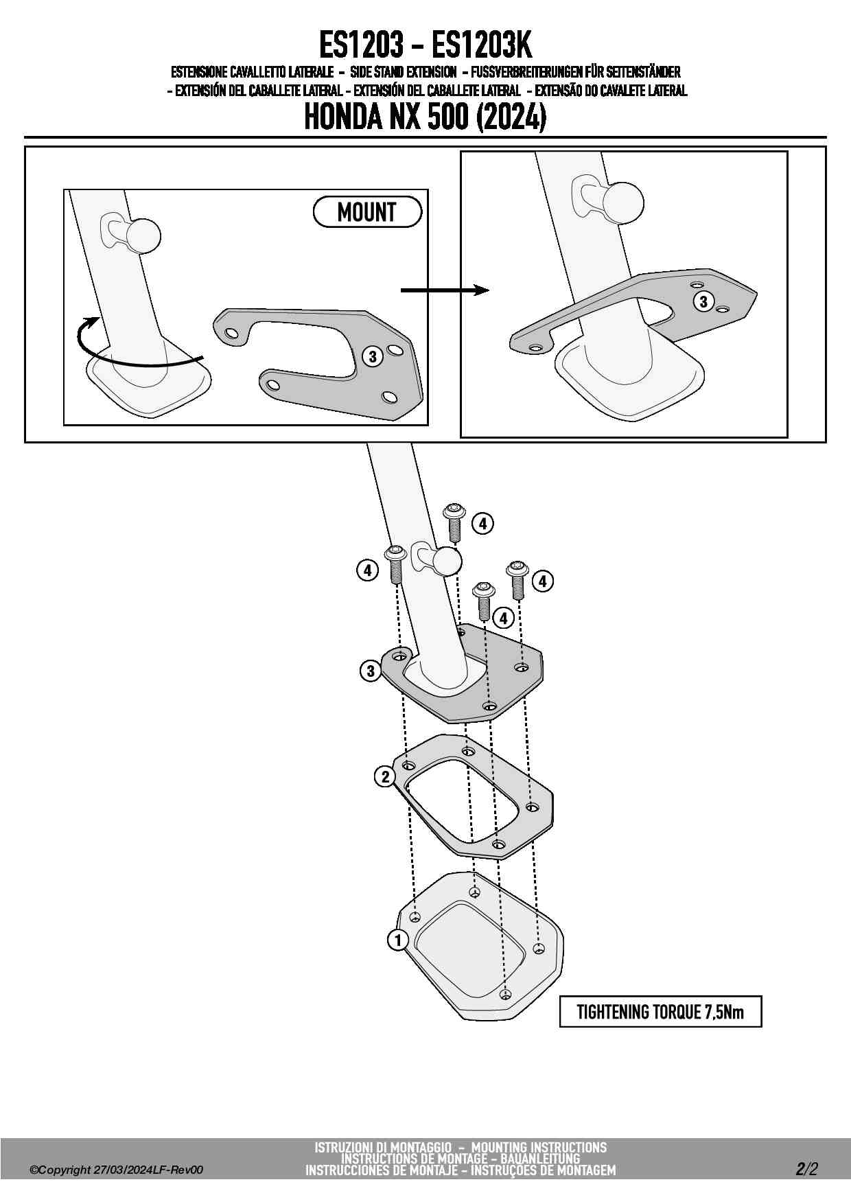 Poszerzenie stopki bocznej Givi ES1203 do motocykla Honda NX 500 (24-25)