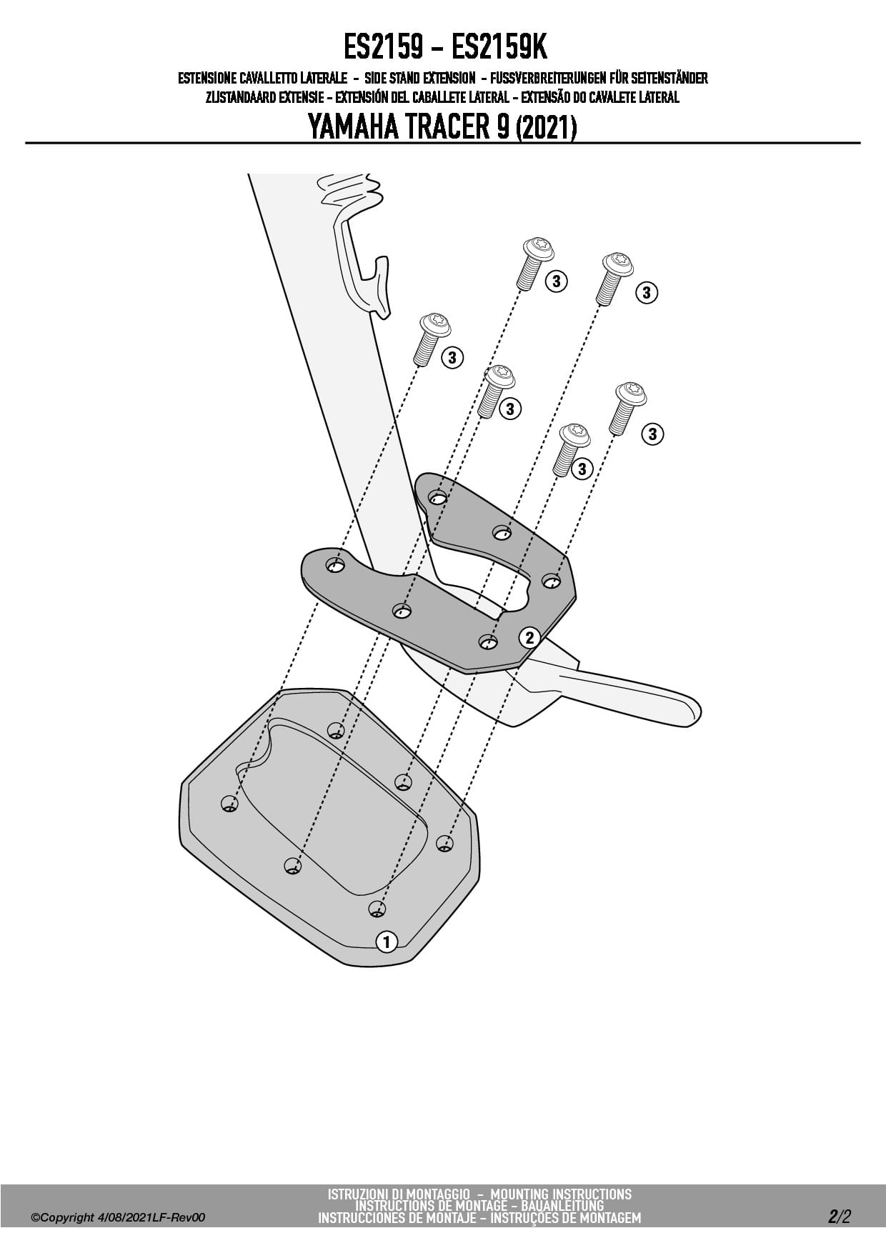 Givi ES2159 poszerzenie stopki bocznej do motocykla Yamaha Tracer 9 / Tracer 9 GT/GT+ (21-24)